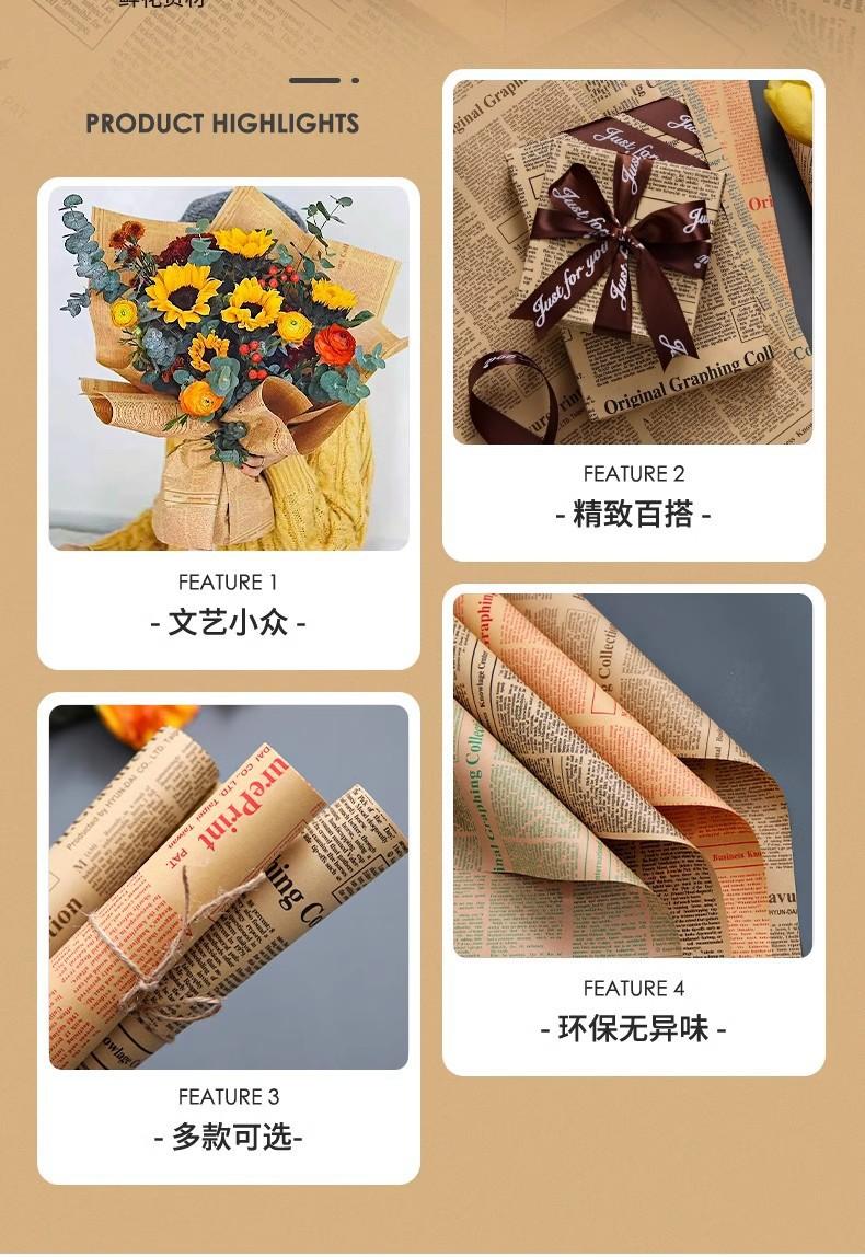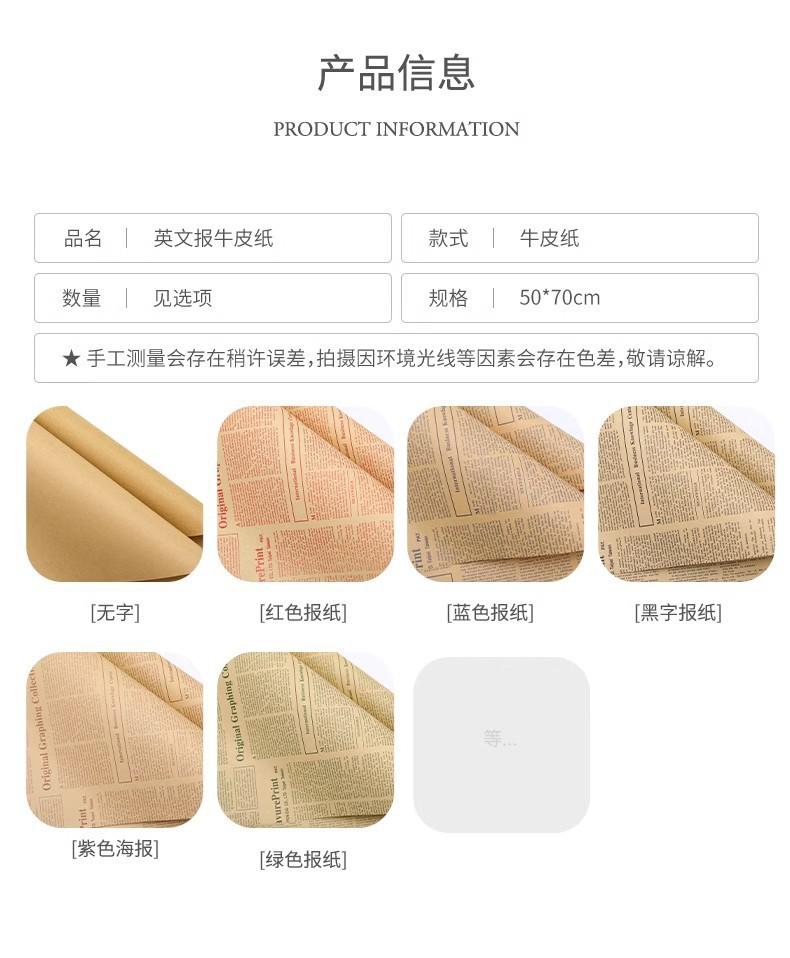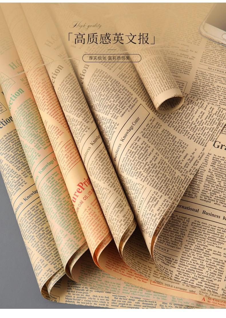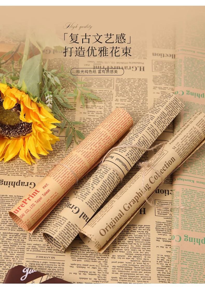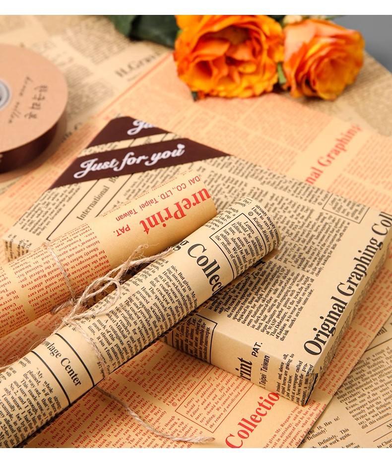 Papel Kraft Retro de Periódico Inglés Papel de Envoltura de Flores Papel de Fondo Inglés Bolsa de Papel Papel de Libro Papel para Caja de Regalo Papel para Ramo DIY