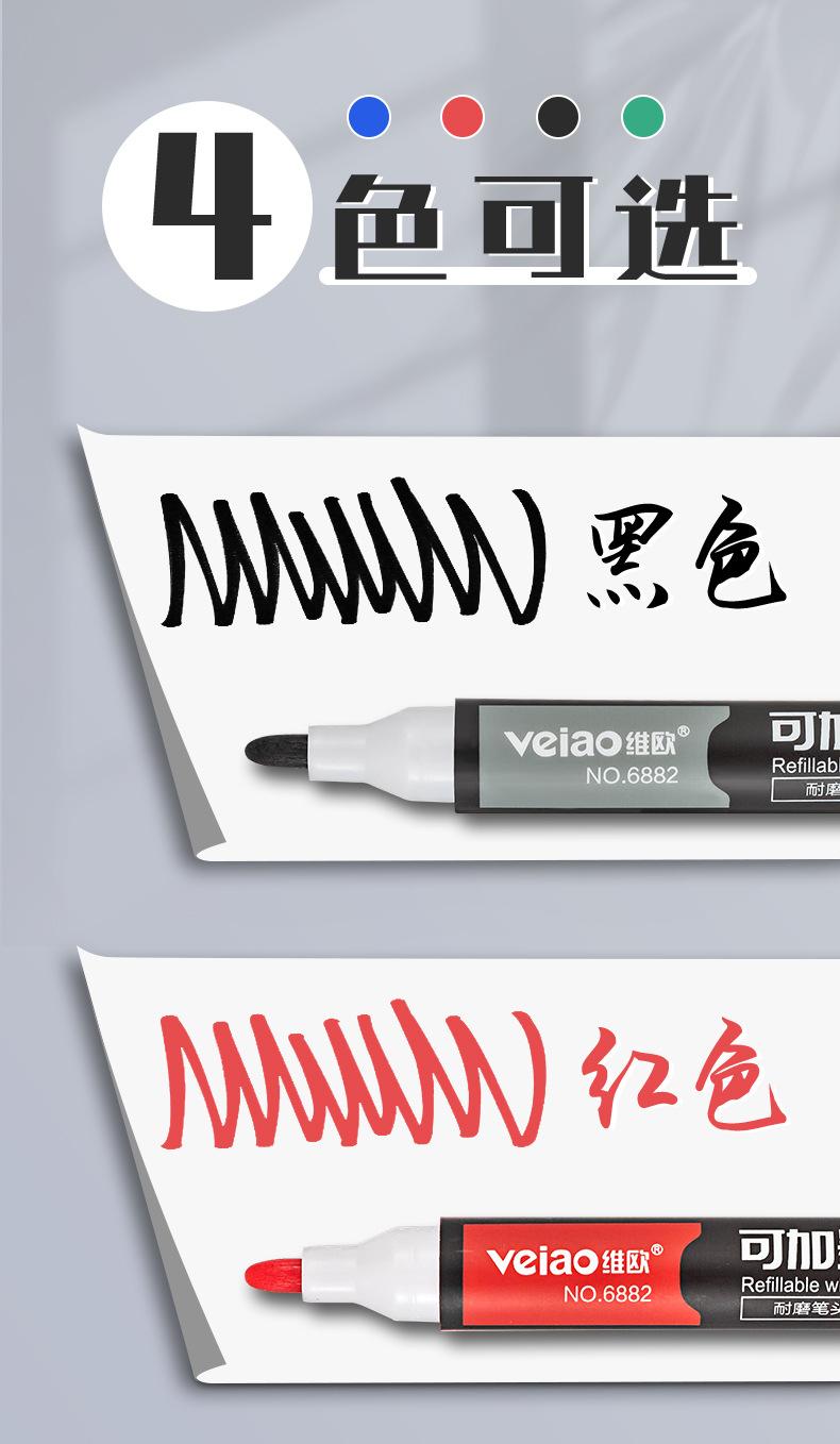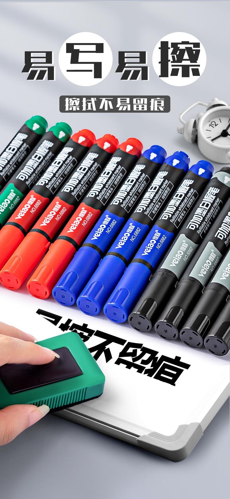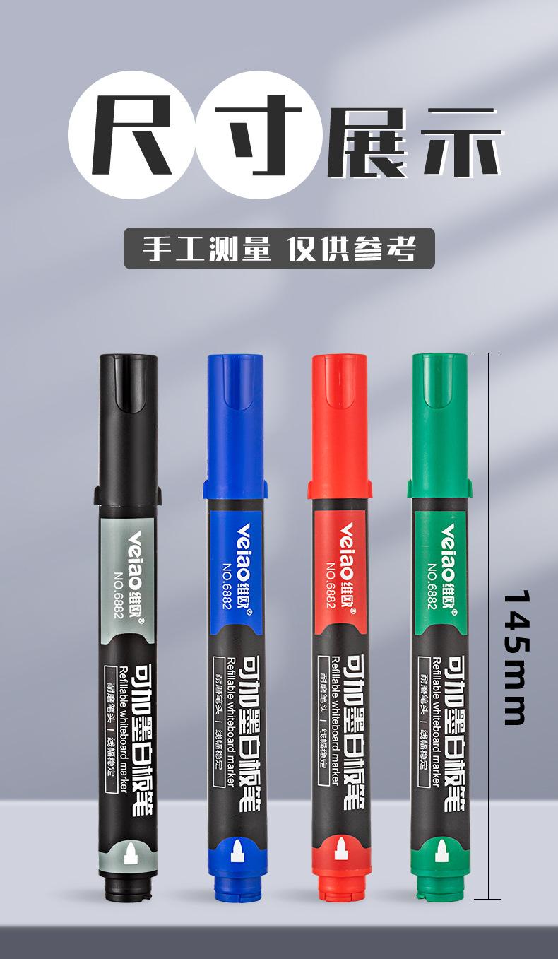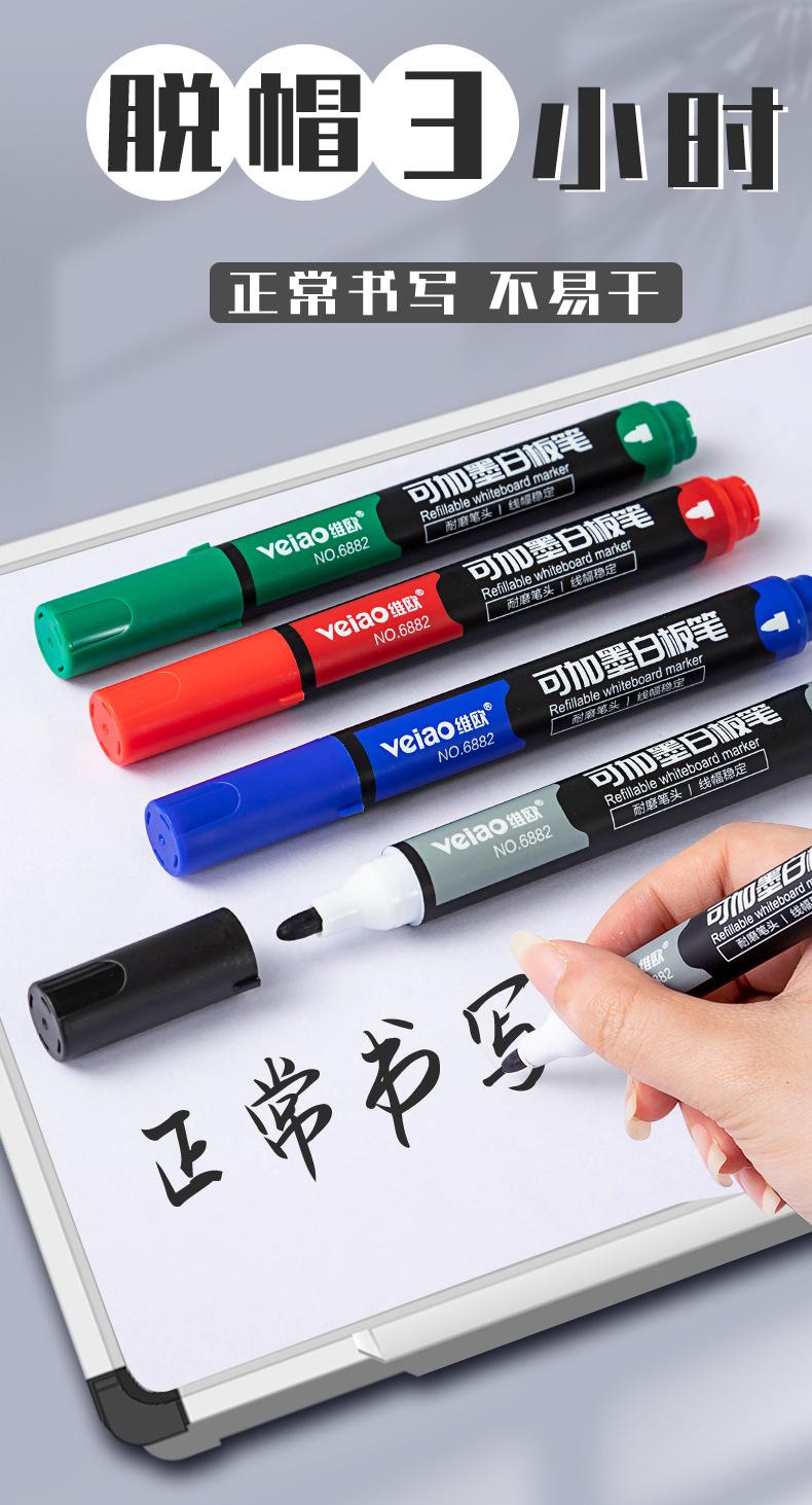 Weiou pluma de pizarra blanca fácil de escribir con tinta borrable que añade tinta, marcador borrable a base de agua, pluma para pizarra negra, negro azul rojo al por mayor