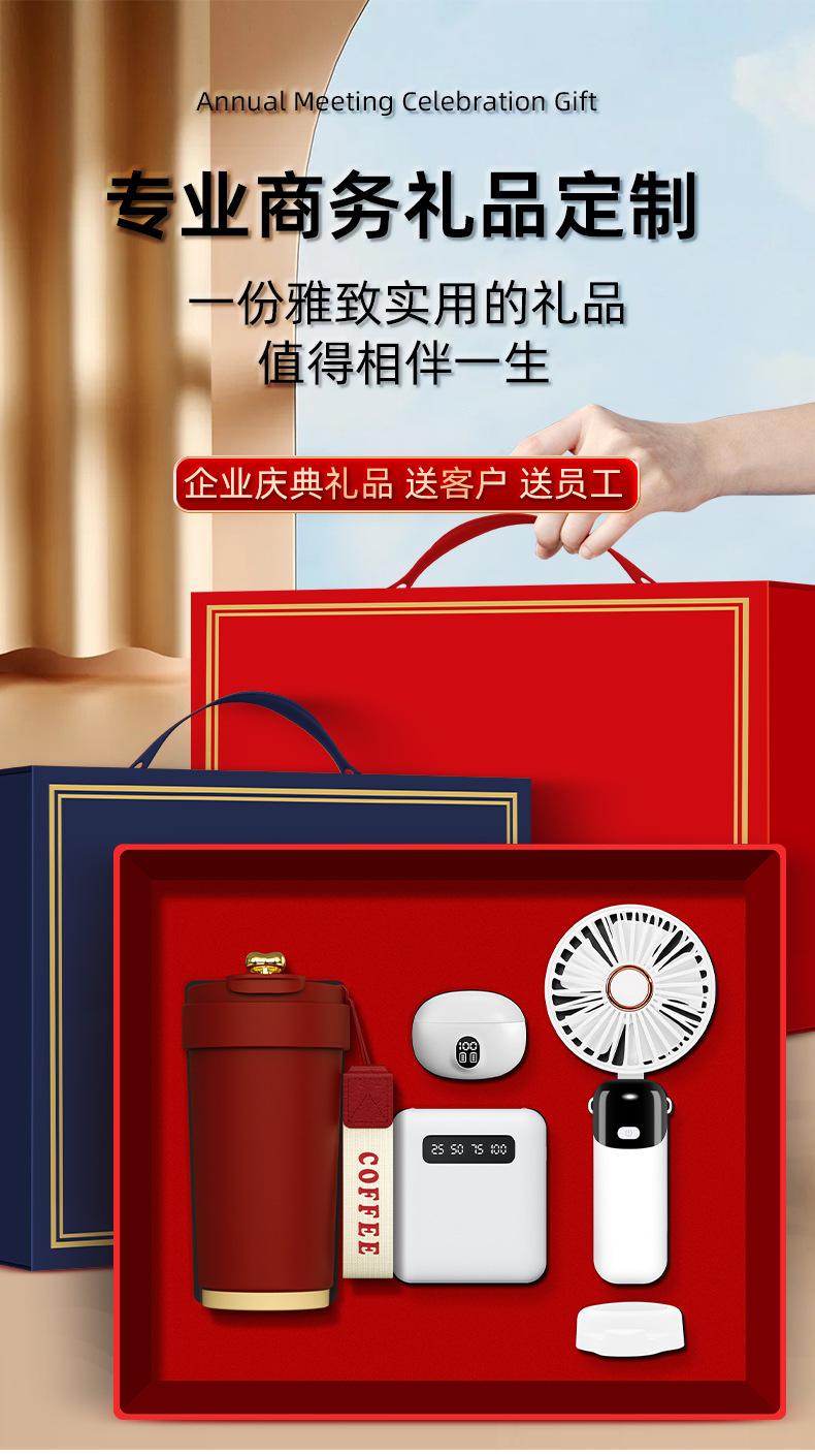[black four-piece set] frosted coffee cup + digital display fan + power bank + bluetooth headset