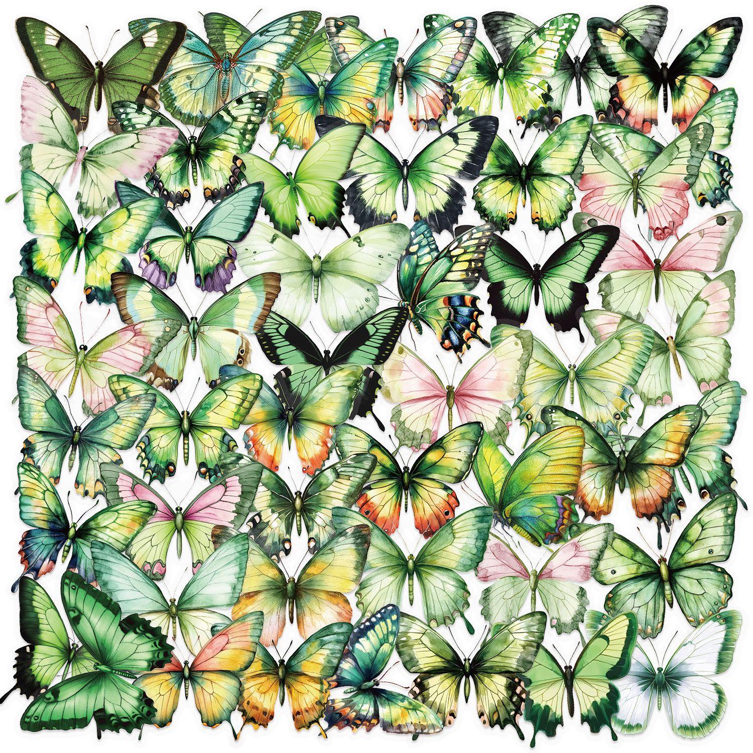 Paquete de Stickers PET de Mariposa Verde (50 Piezas)