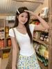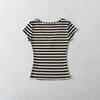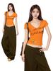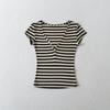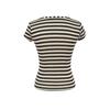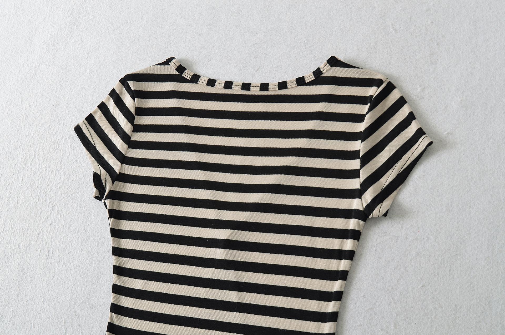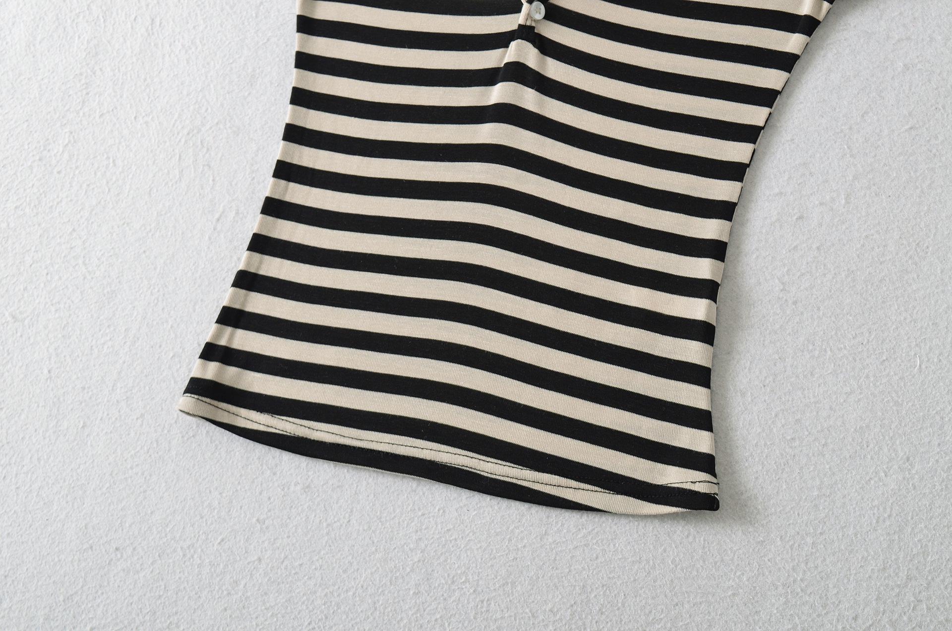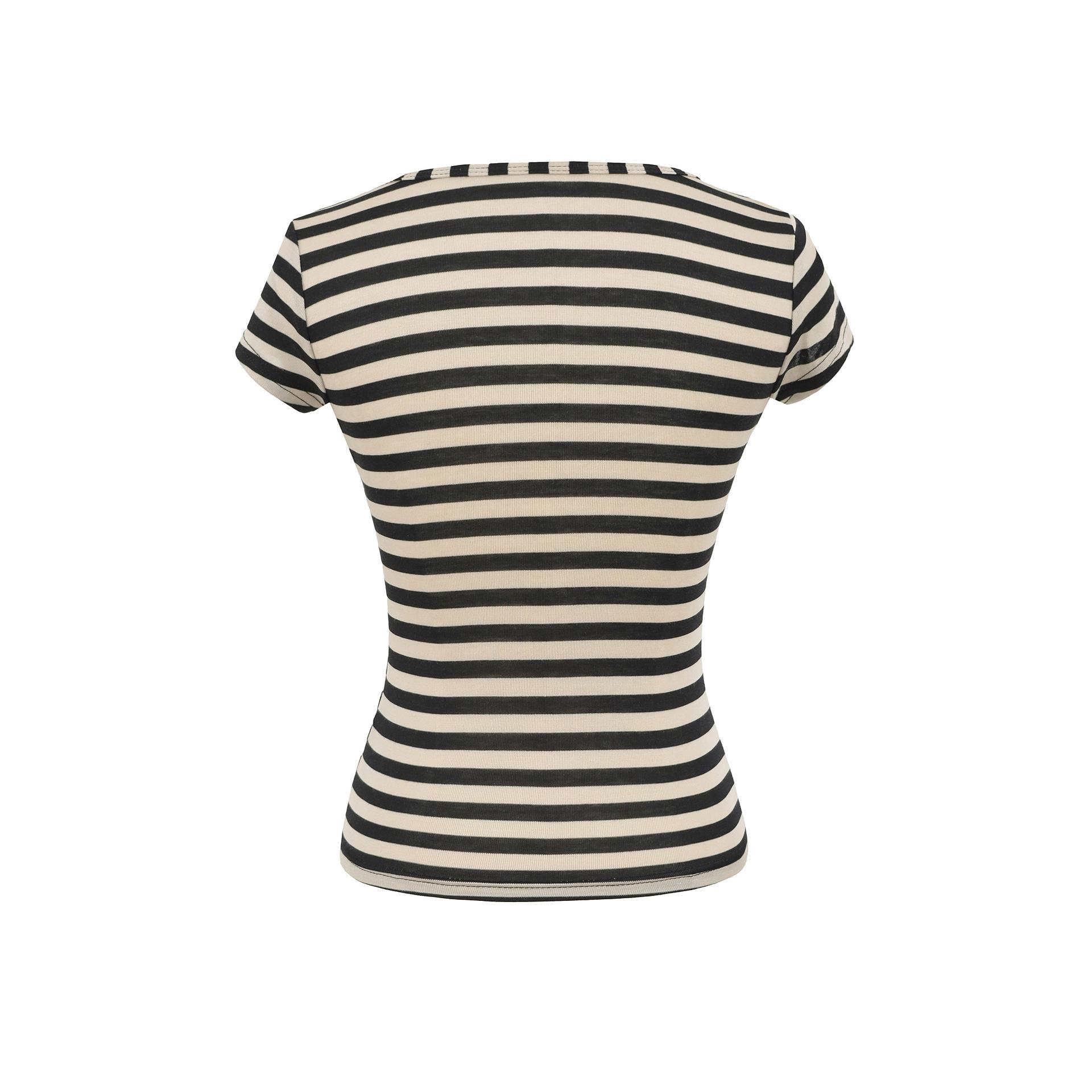 Tencel Chica Caliente Sexy Cuello en V Profundo Manga Corta Top Verano Decoración de Botones en Fila Ajustado a la Cintura Hombro Recto Adelgazante Camiseta Corta Capa Base