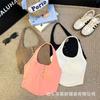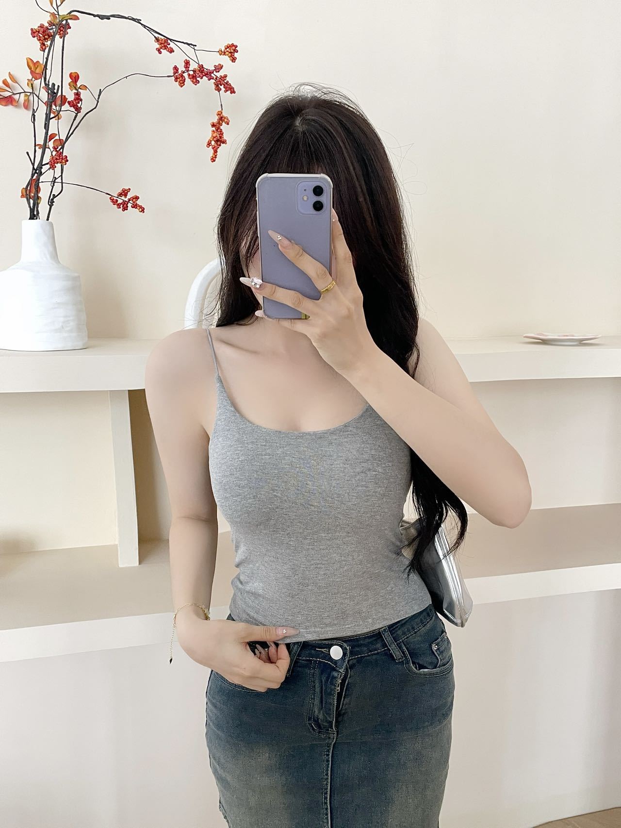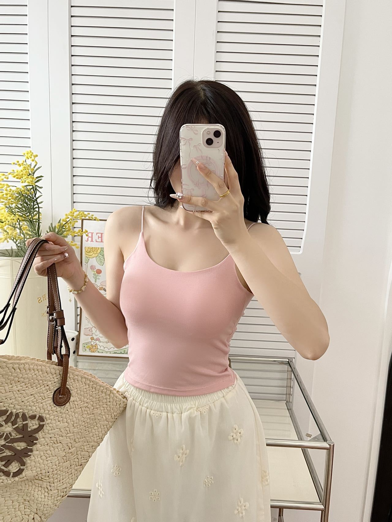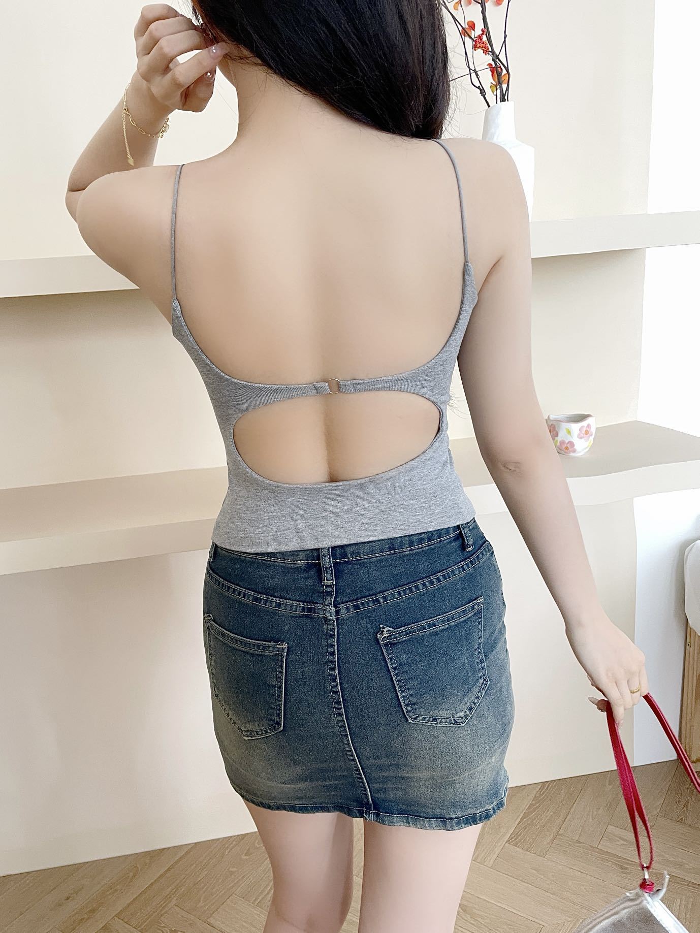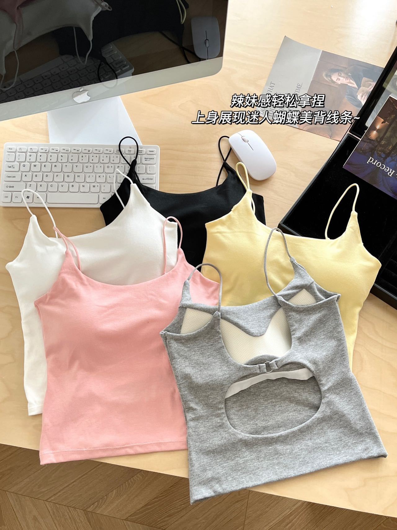 Camisola sencilla de color sólido con almohadillas de sujetador incorporadas, estilo corto de ajuste ceñido, espalda hermosa, top tubo para mujer