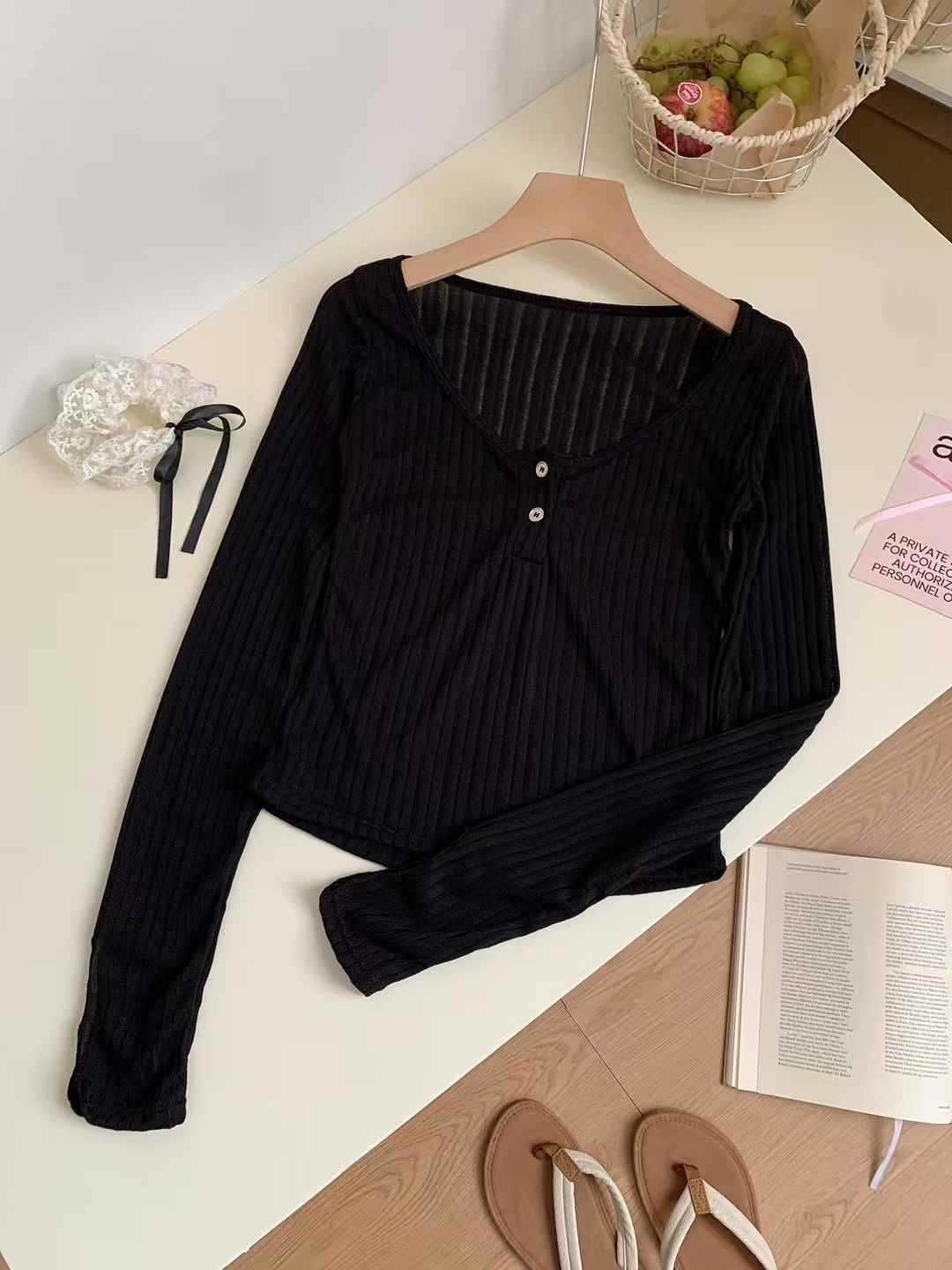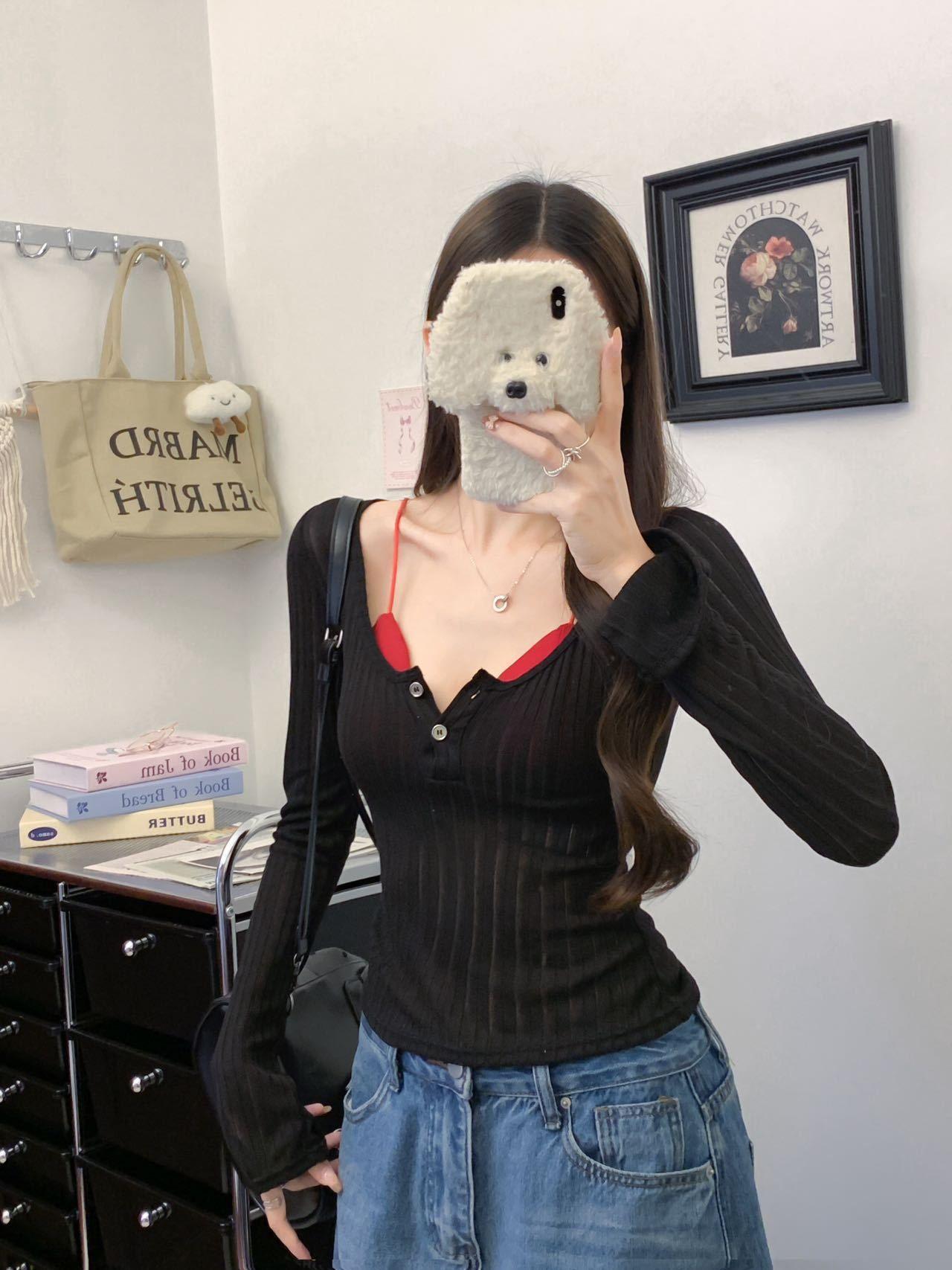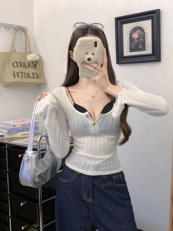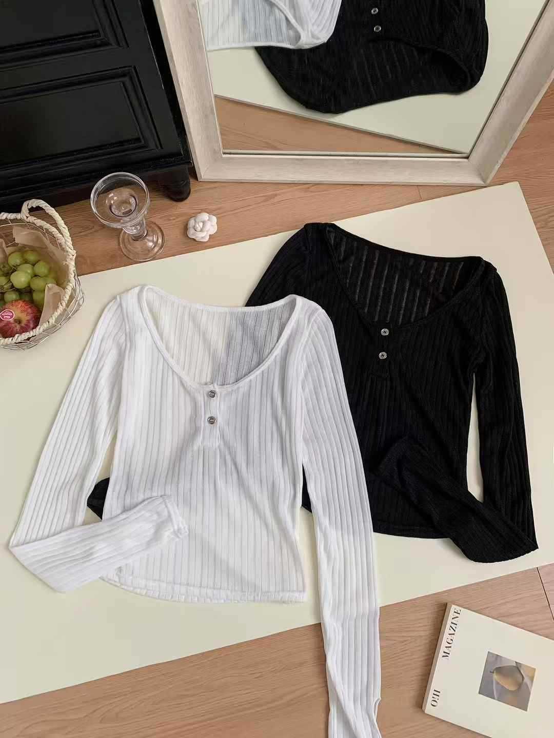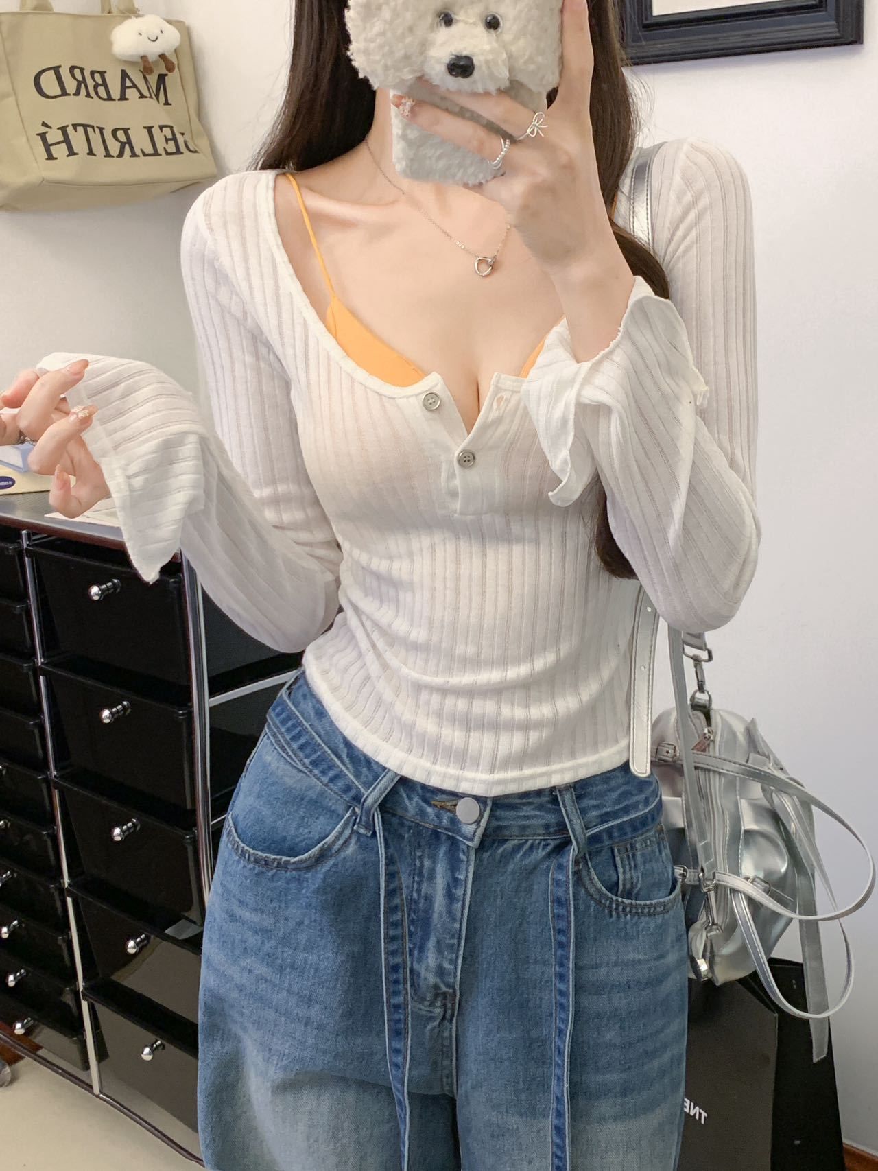 898 # Verano Nuevo Ropa de Protección Solar, Camiseta Fina de Manga Larga, Diseño Versátil de Cintura en Capas, Top Cárdigan con Botones