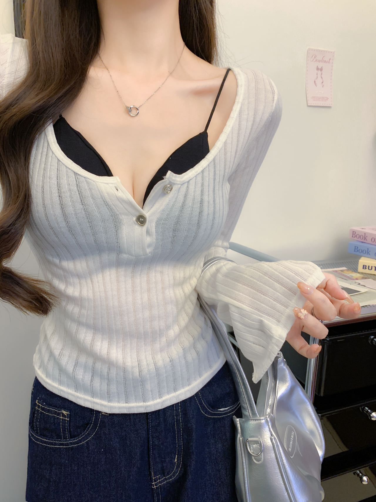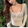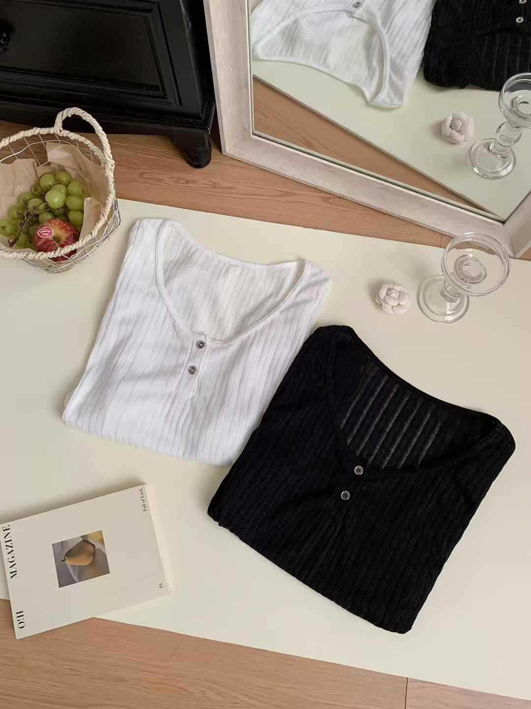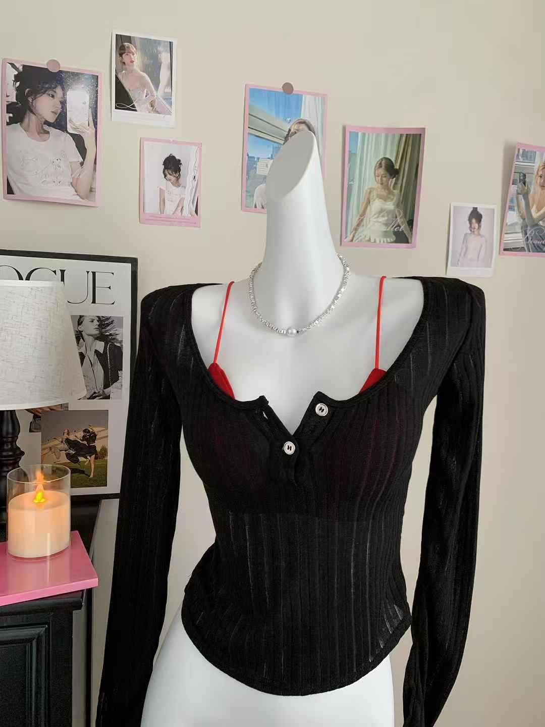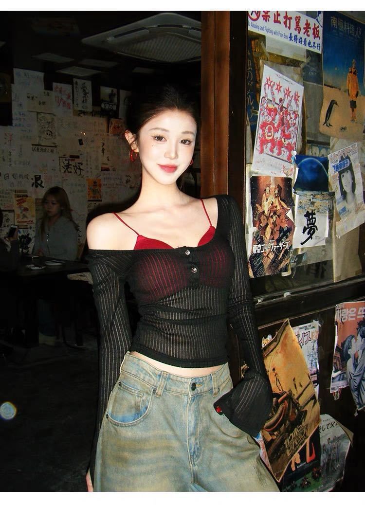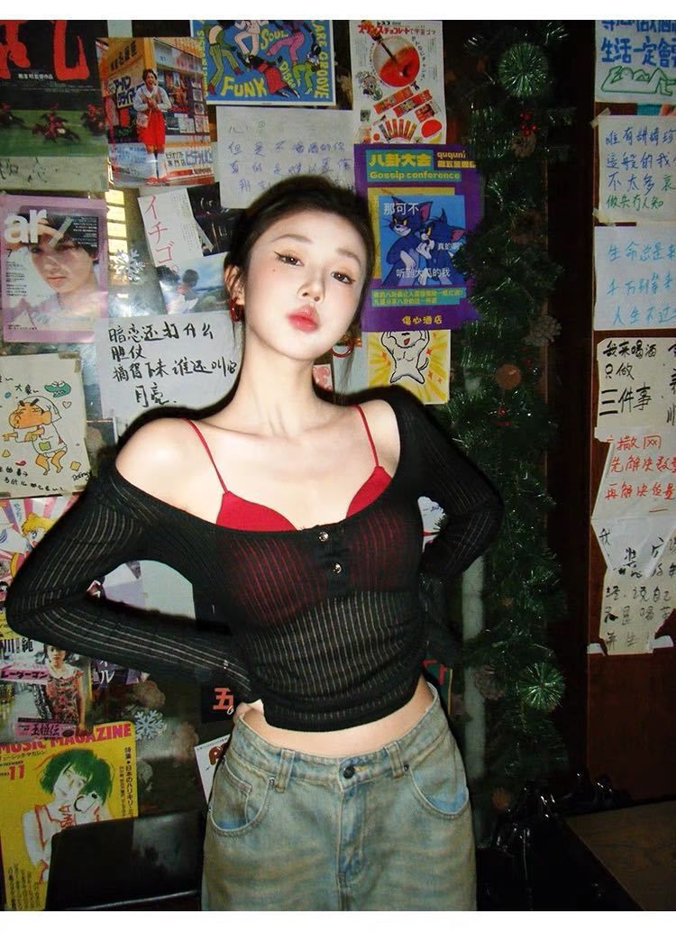 898 # Verano Nuevo Ropa de Protección Solar, Camiseta Fina de Manga Larga, Diseño Versátil de Cintura en Capas, Top Cárdigan con Botones