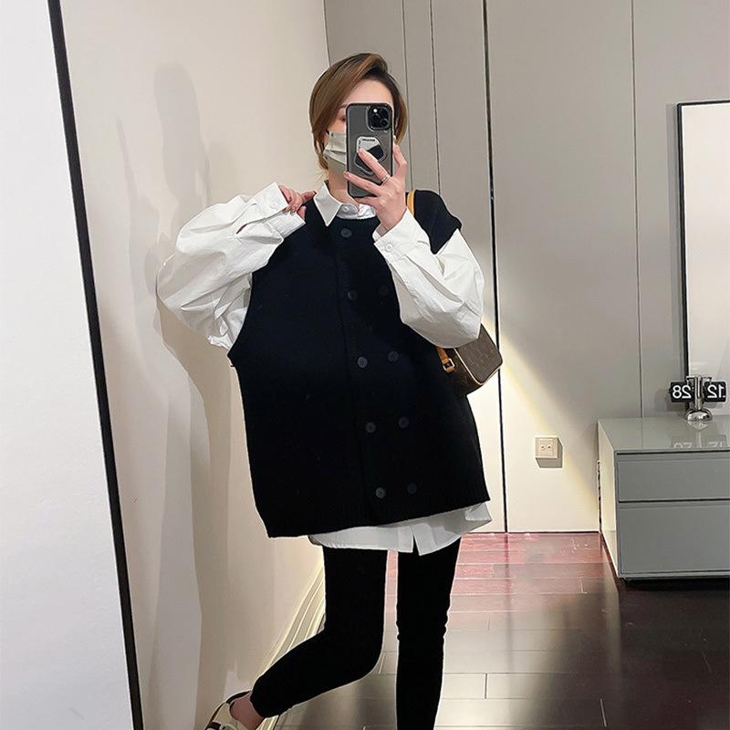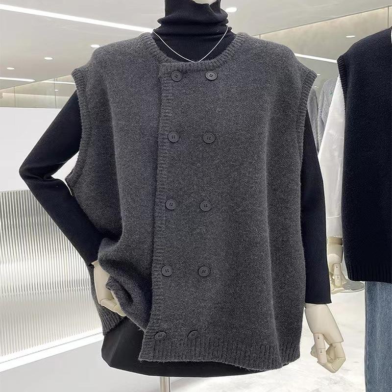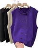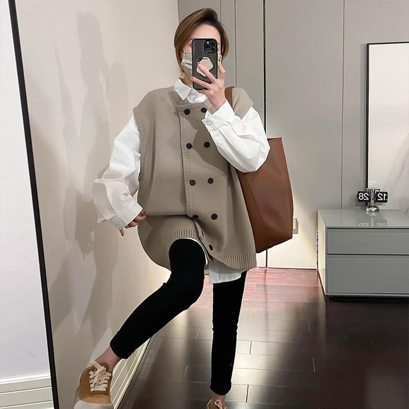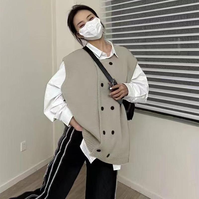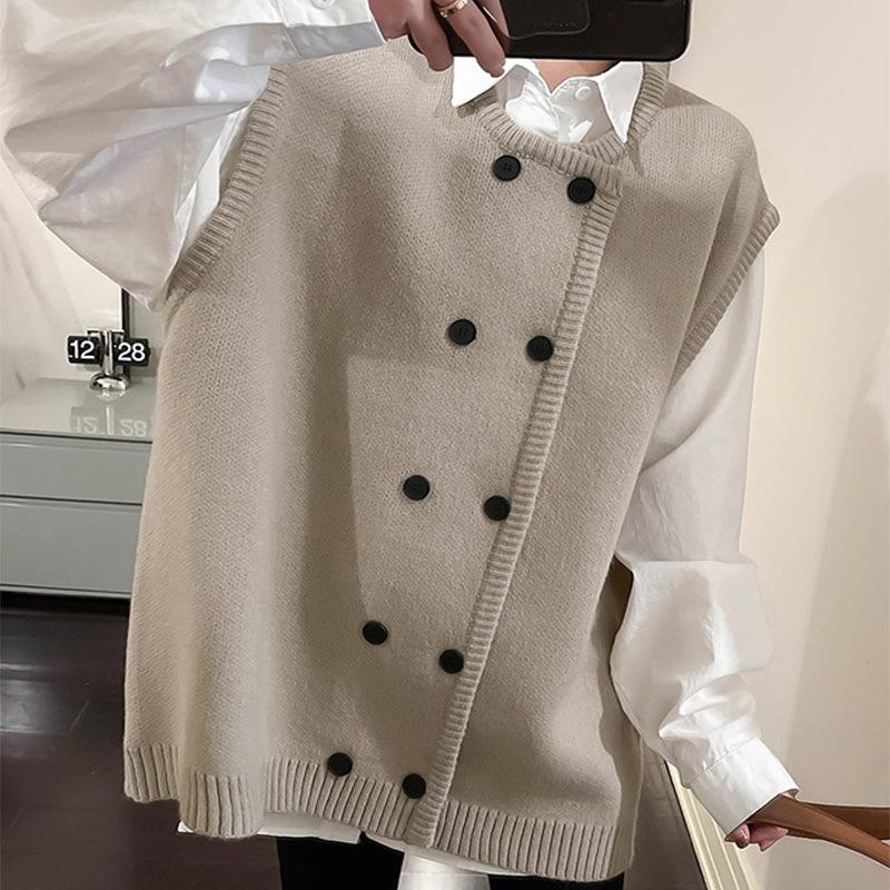 Moda Otoño e Invierno 2024 Chaleco de Punto de Doble Botonadura con Cuello Redondo Adelgazante Nuevo Combinable Chaleco Suelto Top Exterior para Mujer
