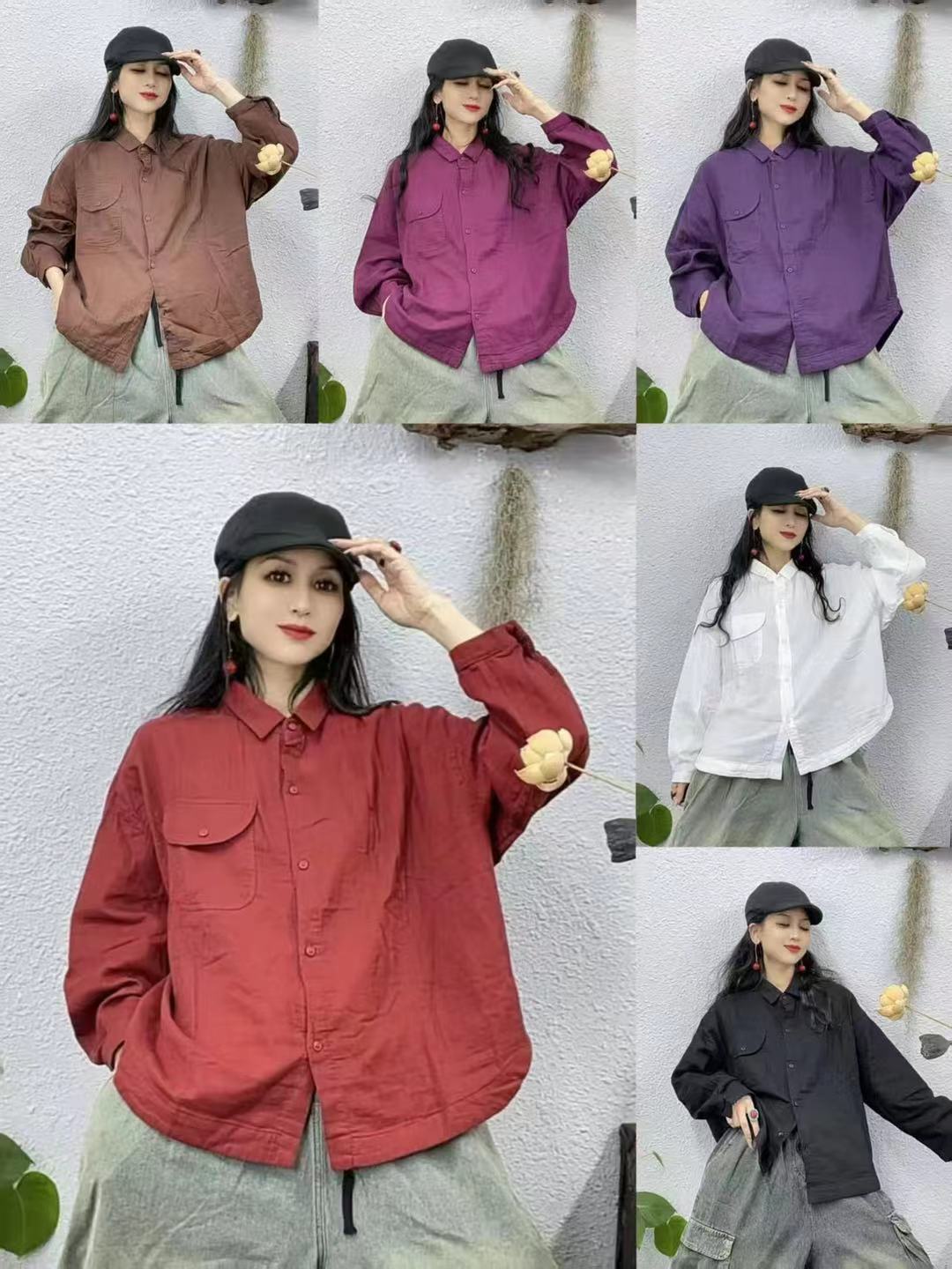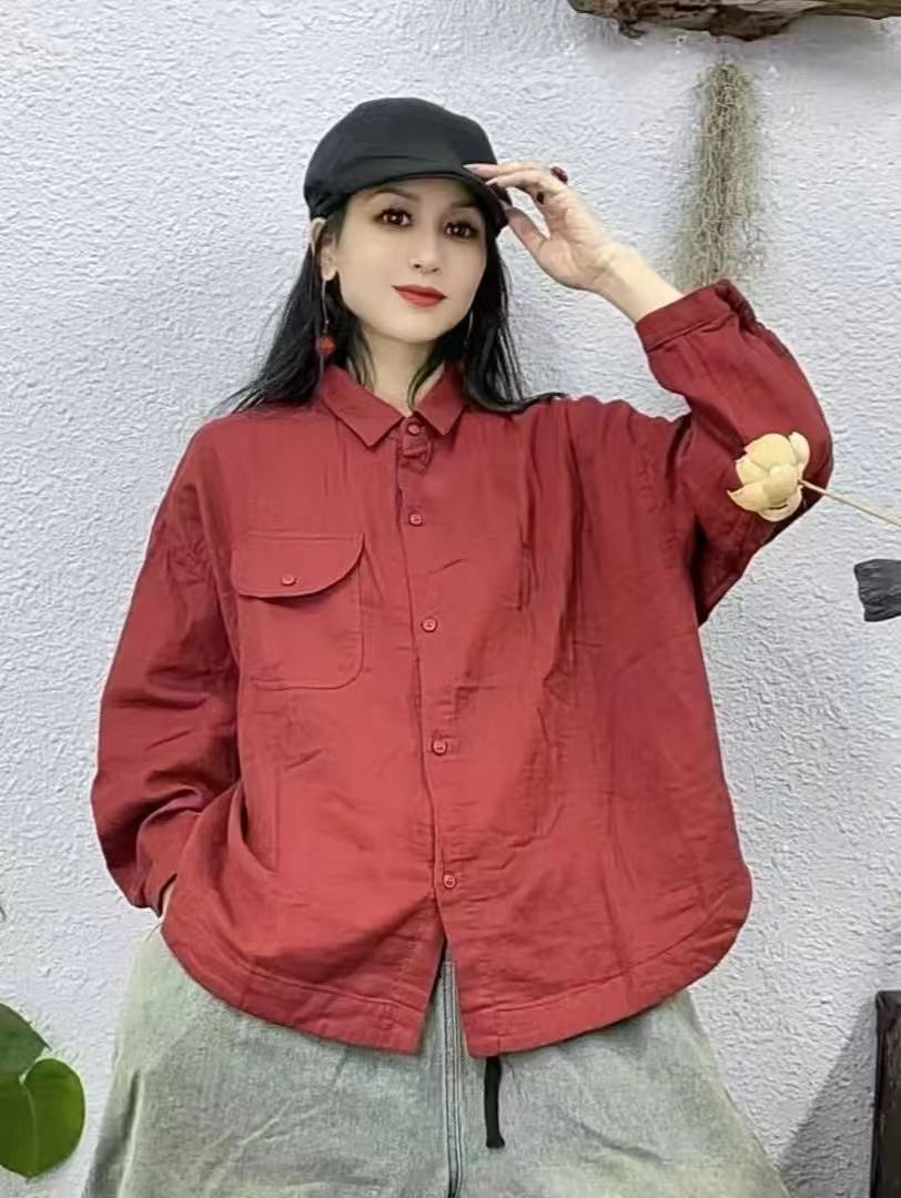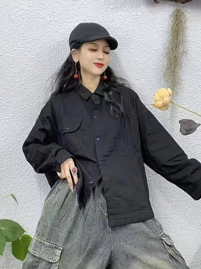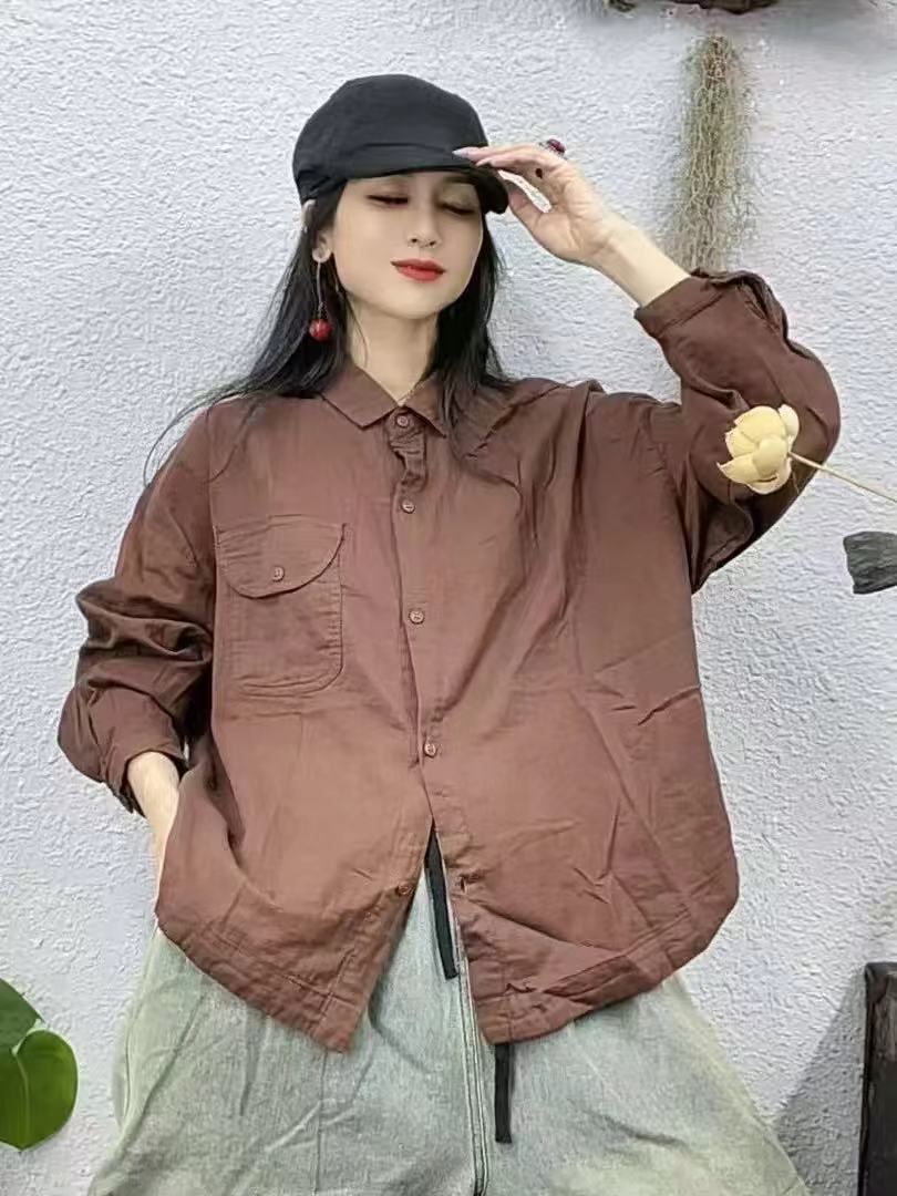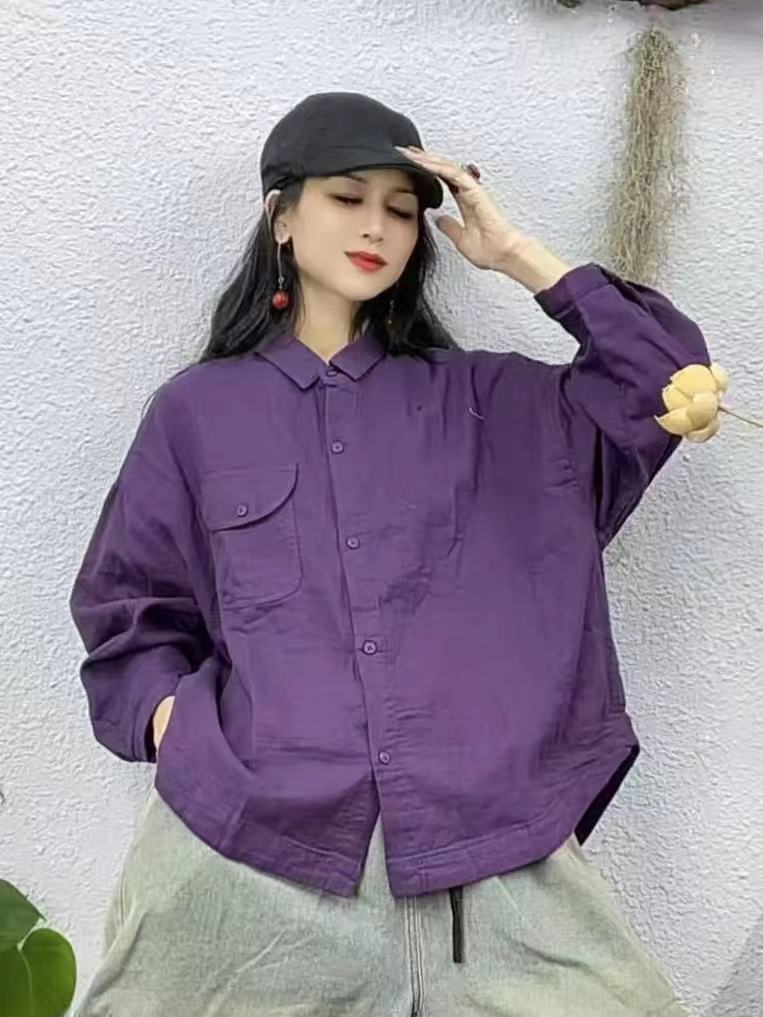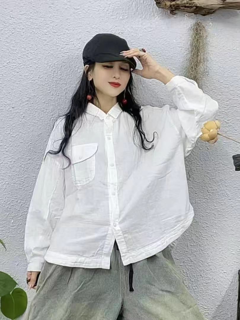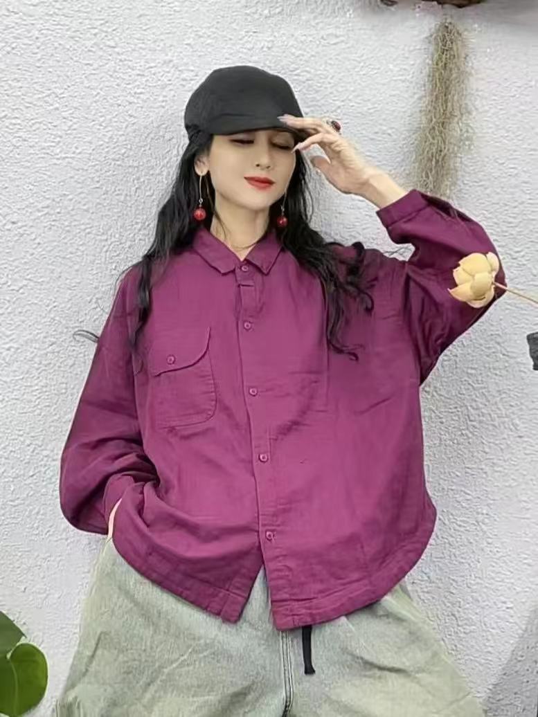 Camisa Temperamento Mujer 2025 Otoño Nueva Suelta Versátil Casual Moda Manga Larga Cárdigan Top Gasa de Algodón Doble Capa Mujer