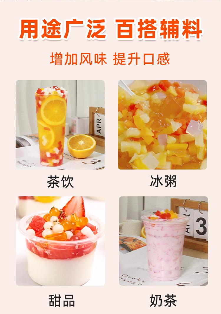 Cristal Tricolor Fruta Té de Leche de Coco Tienda Especial Comercial Ingredientes de Fruta Jalea de Konjac de Color Piezas de Fruta