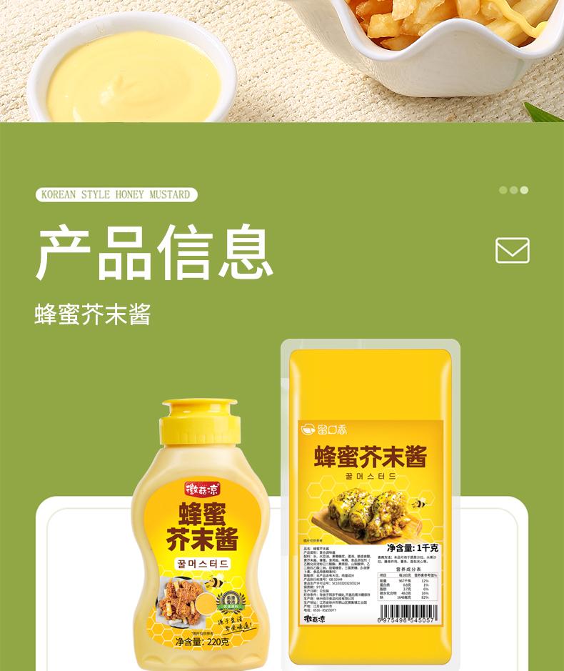 Salsa Miel Mostaza Paquete 1.0kg Salsa Pollo Frito Coreano Papas Fritas Hamburguesa Pizza Salsa Venta al Mayoreo Aderezo para Ensalada