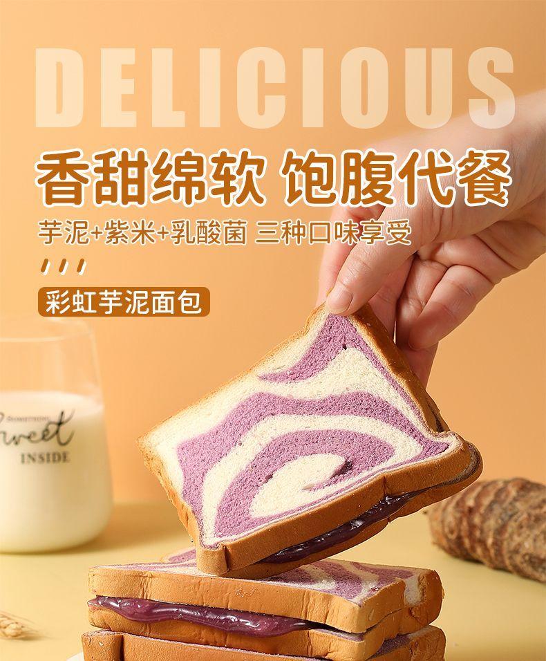 Pan de Arroz Morado Taro Sándwich Tostada Súper Suave Caja Entera Desayuno Pan Desmenuzado a Mano Snack Sustituto de Comida Instantánea