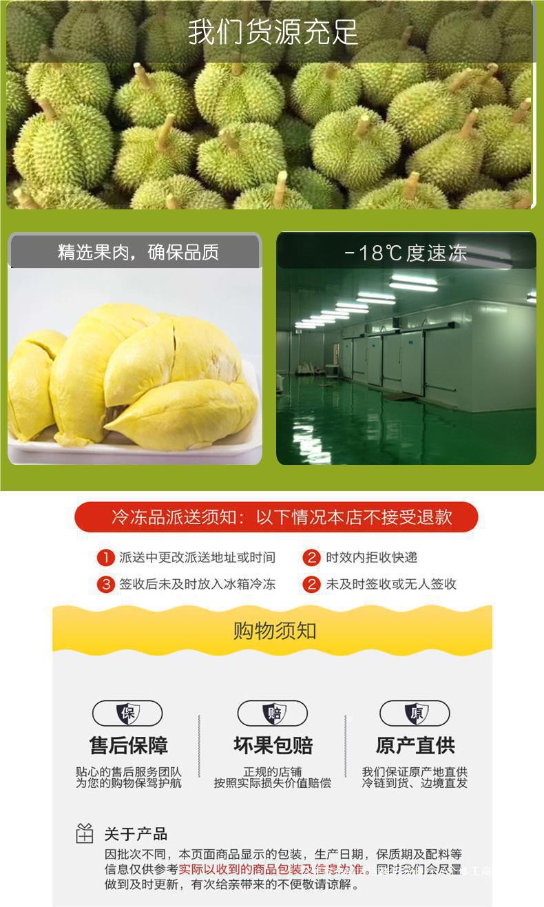 Pulpa Congelada de Carne de Durian Almohada Dorada Fresca Descascarada Congelada con Semillas Congelada Rápidamente Árbol Frutal Fruta Madura Venta al por Mayor