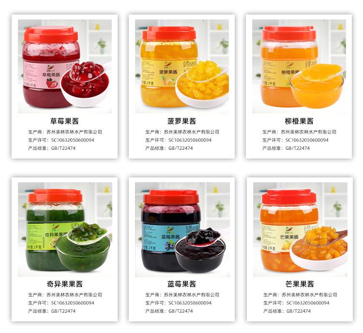 Strawberry jam, Passion jam, Mango jam, Kiwi jam, Blueberry jam, Orange jam, Pineapple jam