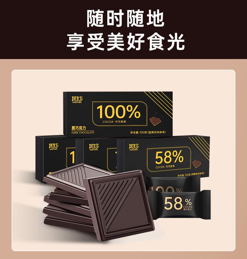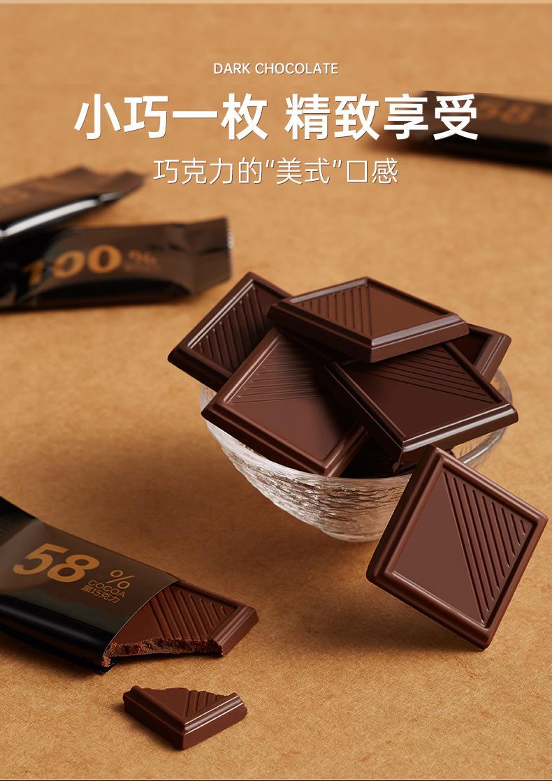 Contains sucrose [100 packs in total] 58% black chocolate 100gx4 boxes - moderately sweet and bitter/only 27.9