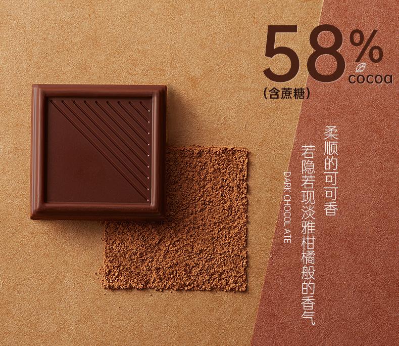 Contains sucrose [25 packs in total] 58% dark chocolate 100g/box - moderately sweet and bitter/only 9.9