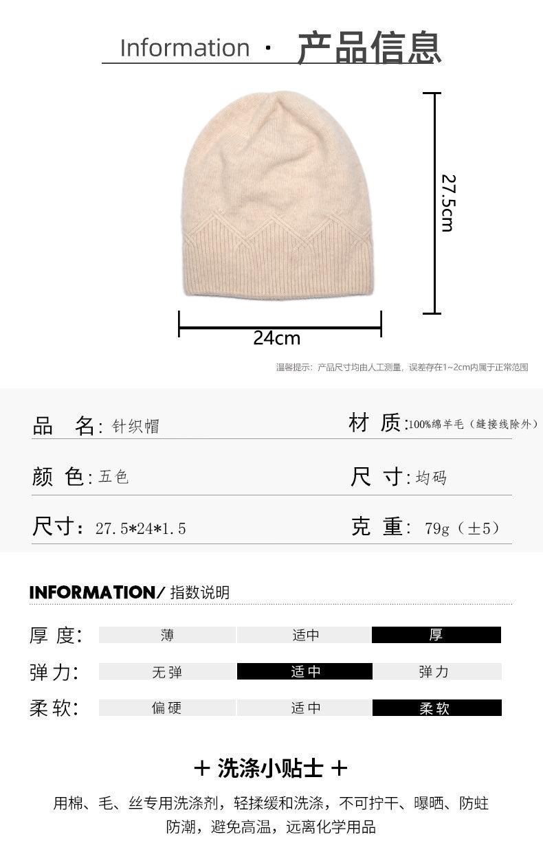 Sombrero tejido de lana de oveja 100% para mujer, grueso, cálido, casual, de color sólido, temperamental, versátil, gorro de lana, otoño/invierno