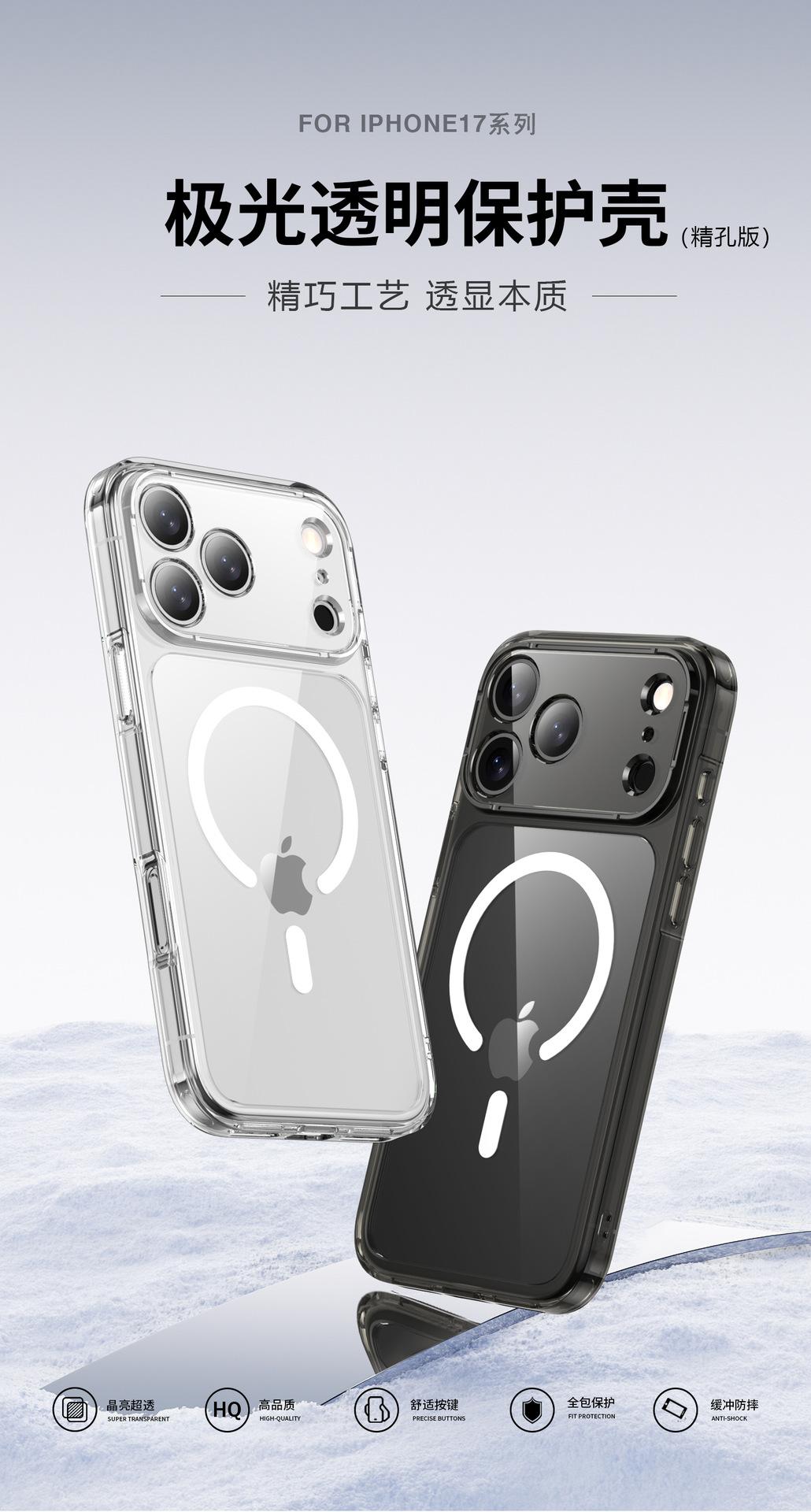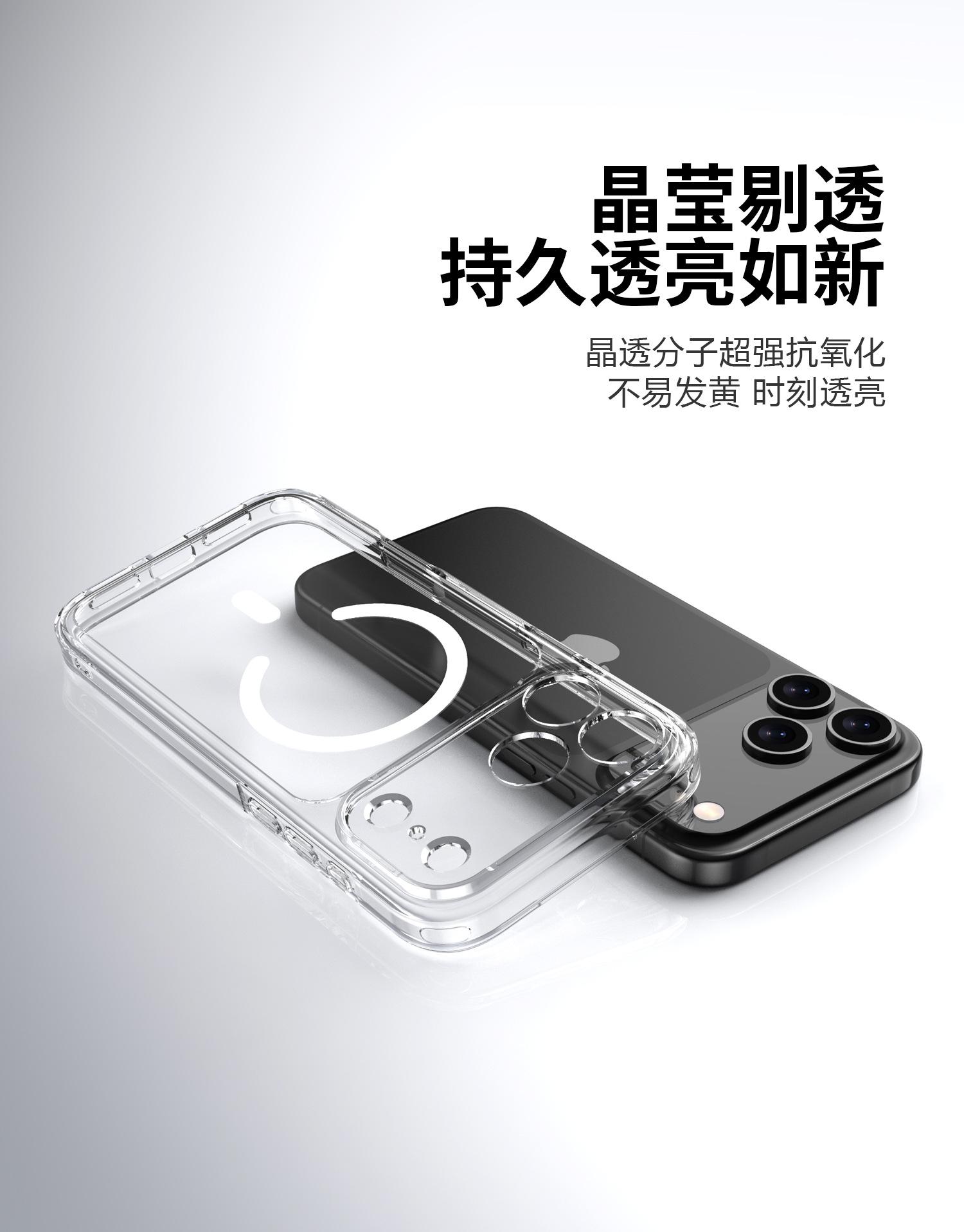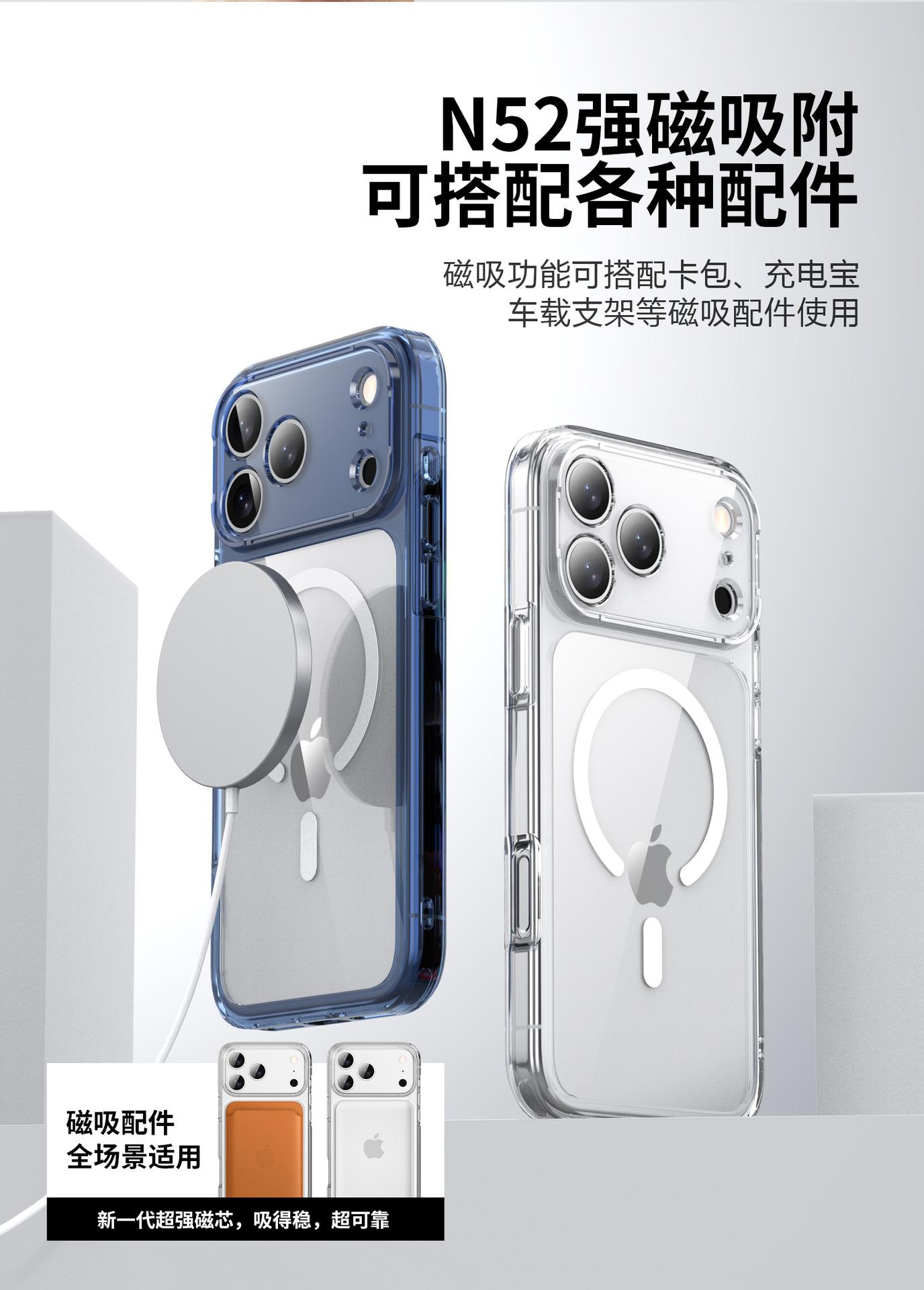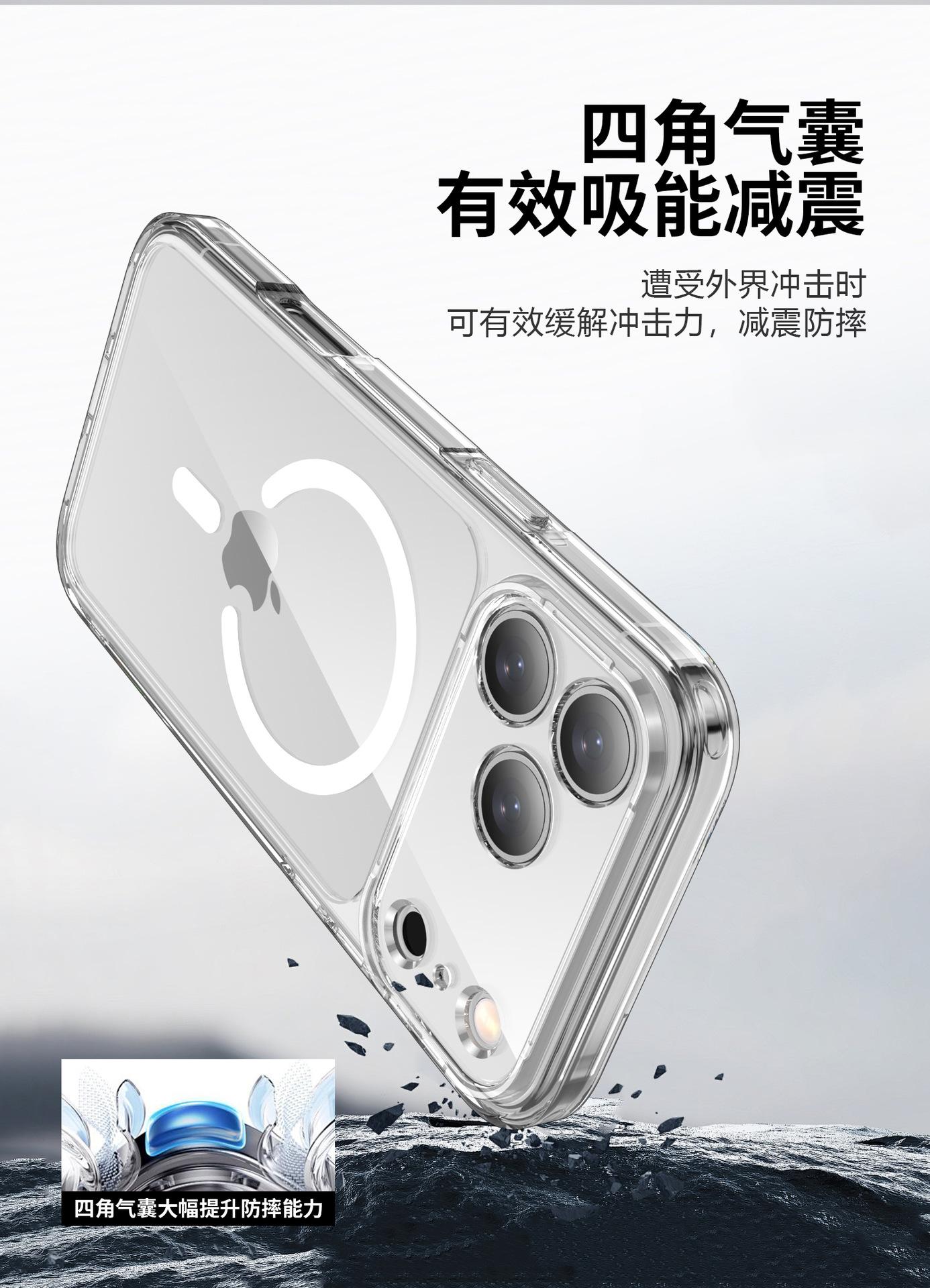 Funda Magnética Transparente Adecuada para Apple 17Promax Funda para Teléfono Móvil Magnética Iphone17Pro Transparente Anticaídas Lista para Entrega