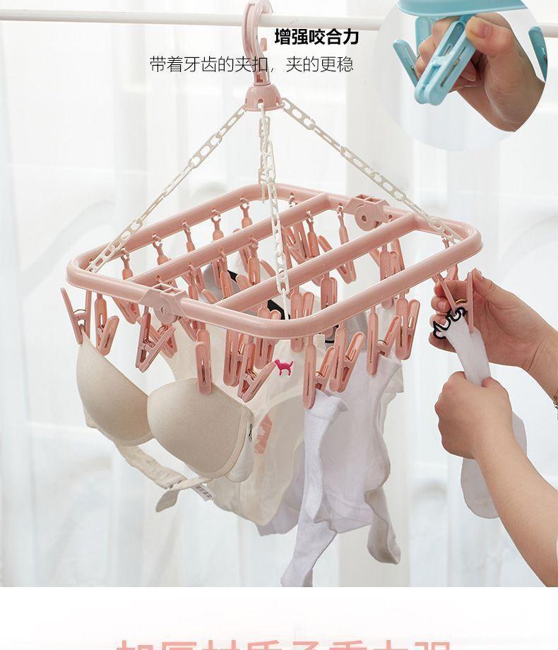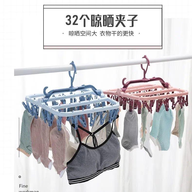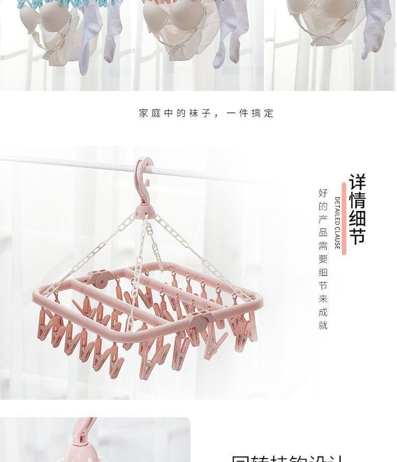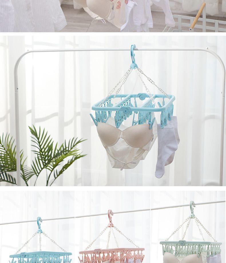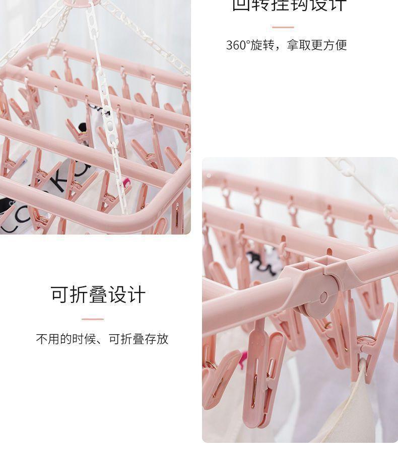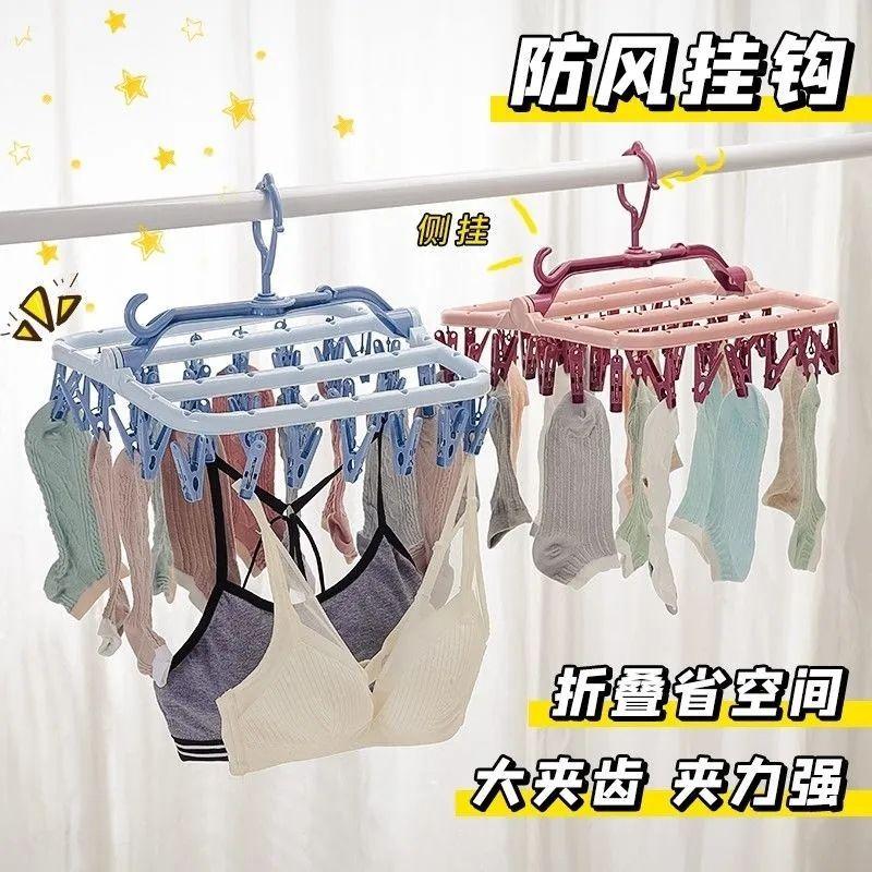 Tendedero de Ropa Multifuncional de Plástico Plegable Nuevo para el Hogar a Prueba de Viento con Múltiples Pinzas para Secar Ropa Interior y Ropa Interior