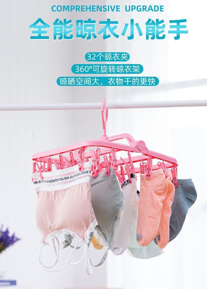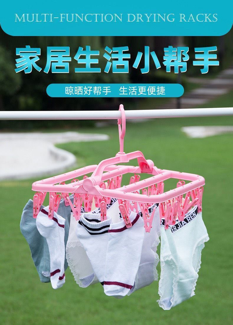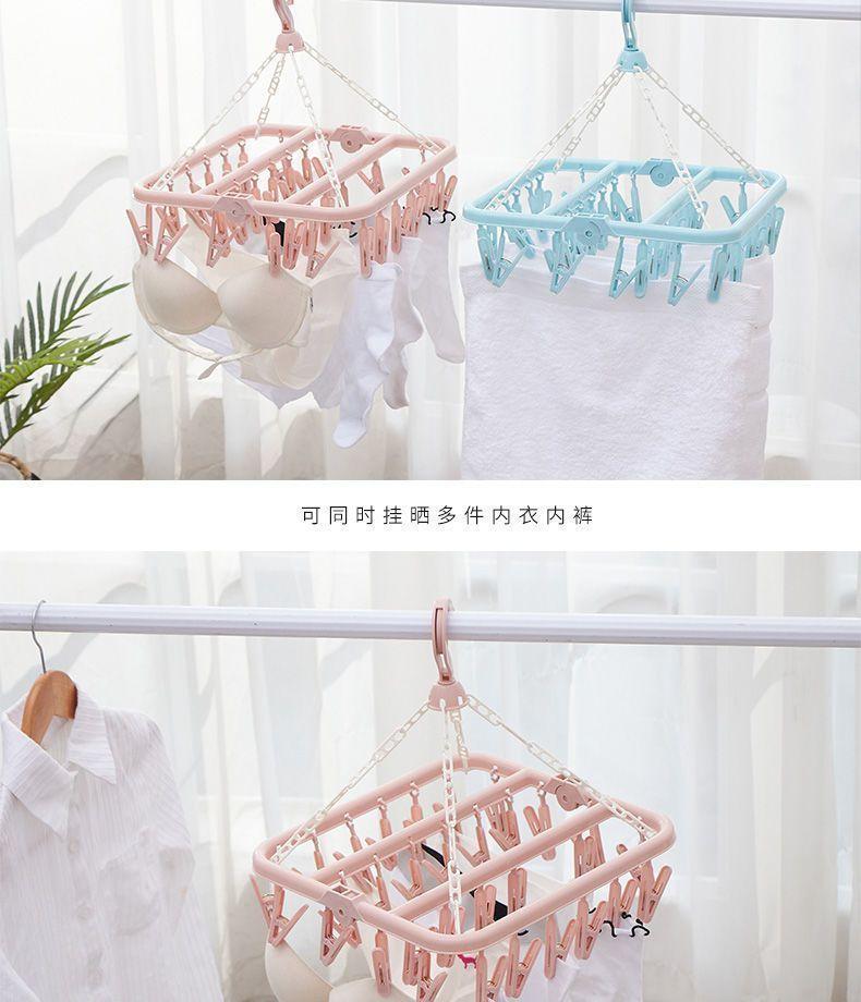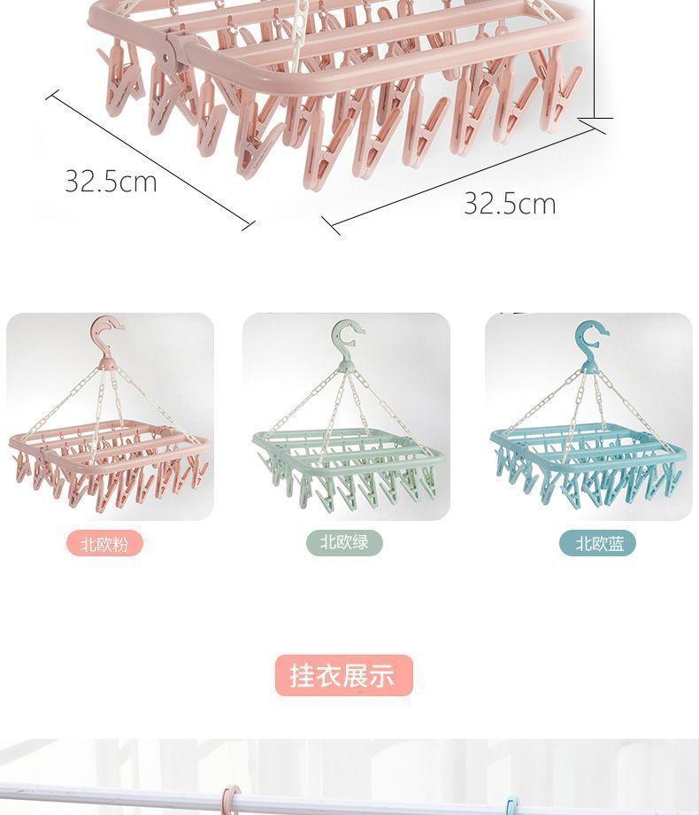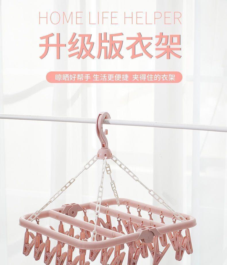 Tendedero de Ropa Multifuncional de Plástico Plegable Nuevo para el Hogar a Prueba de Viento con Múltiples Pinzas para Secar Ropa Interior y Ropa Interior