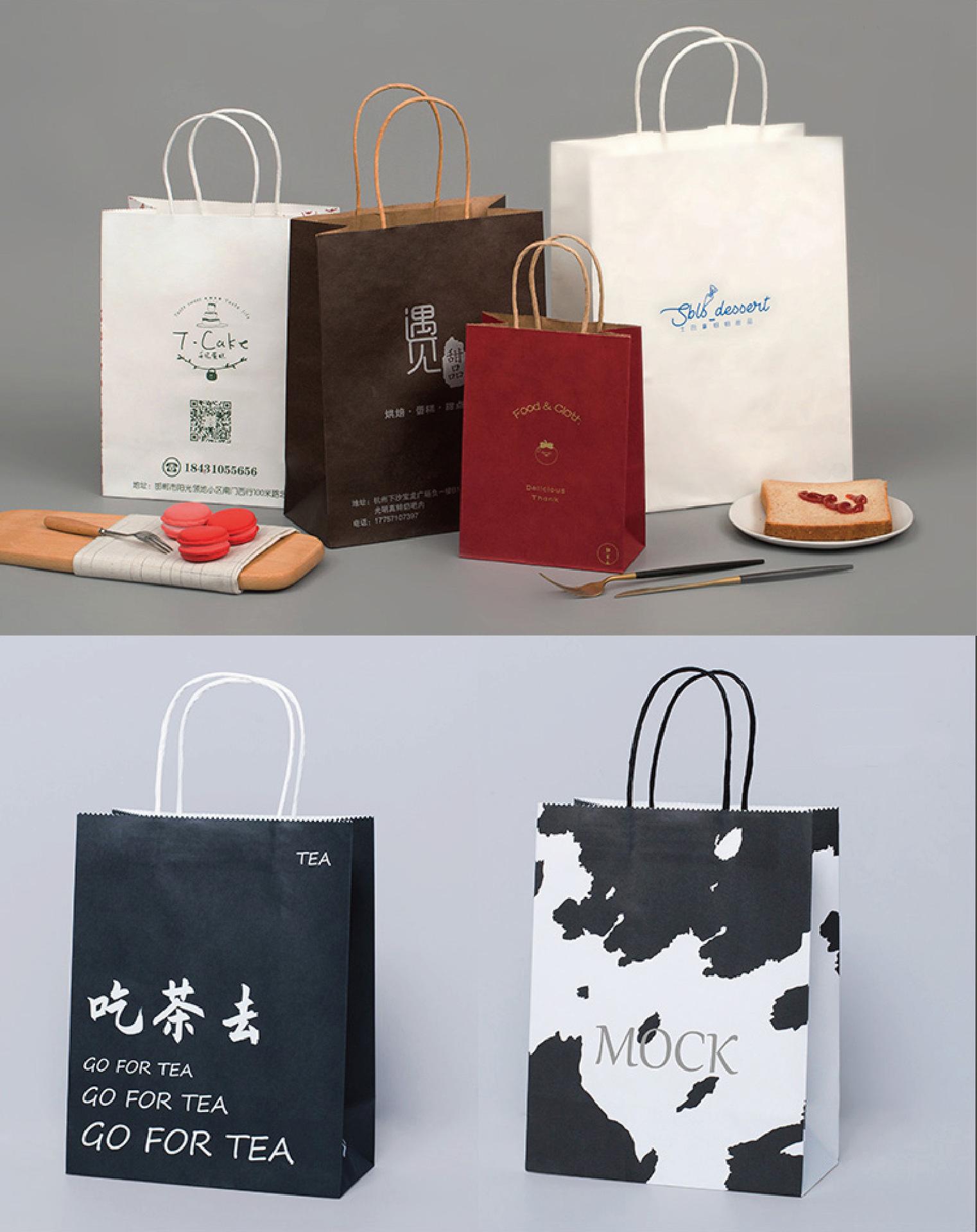 Bolsa de Papel Kraft Marrón al por Mayor Bolsa para Ropa Té con Leche Logotipo Impreso Embalaje para Llevar Compras de Ropa Embalaje para Regalo Bolso de Mano