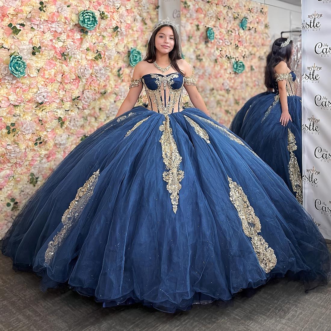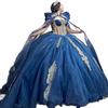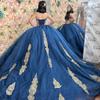 Nuevo Vestido de Novia Largo Vestido de Princesa Vestido de Noche Azul Marino Vestido de Novia Muy Bordado Cola Vestido Largo Elegante y Grandioso