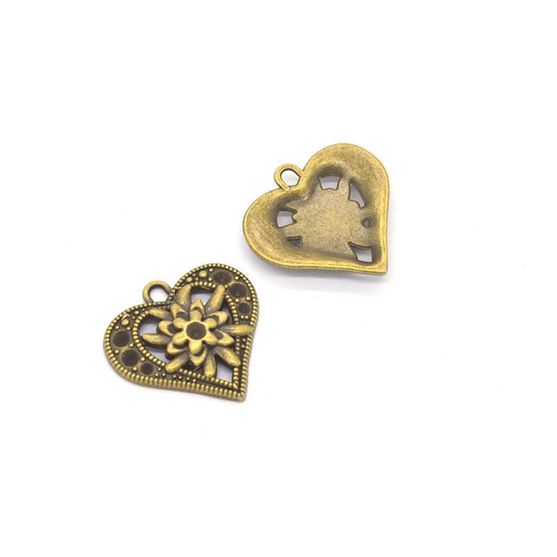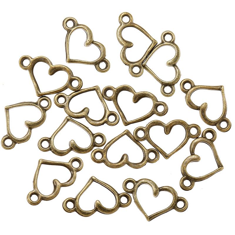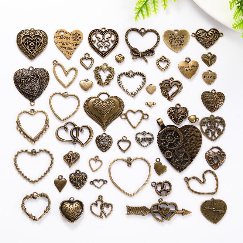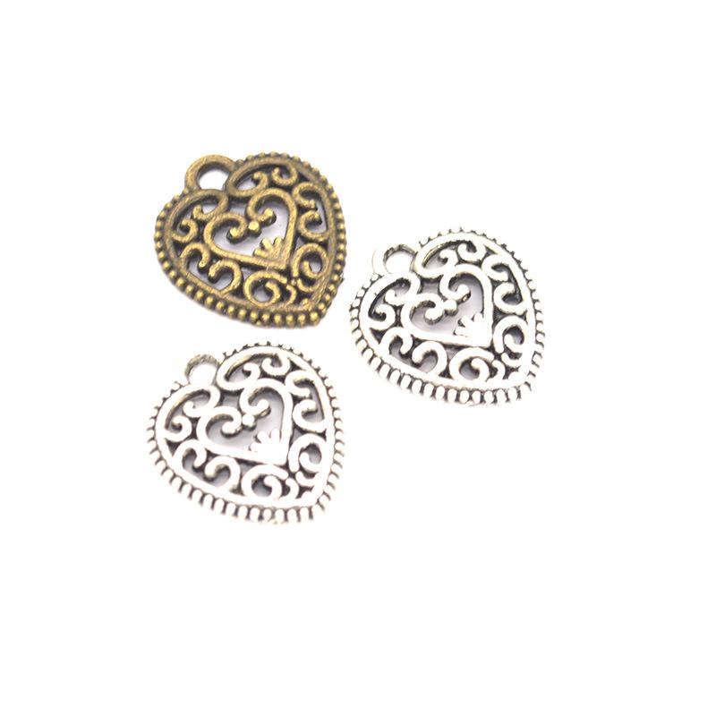 DIY Aleación Verde Antiguo Forma de Corazón Accesorios de Joyería Pulsera Collar Llavero Colgante