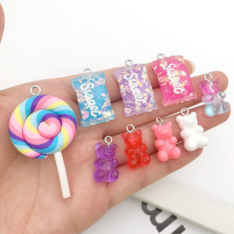 【Nombre】: Colgante de Resina de Caramelo de Paleta de Simulación de Oso