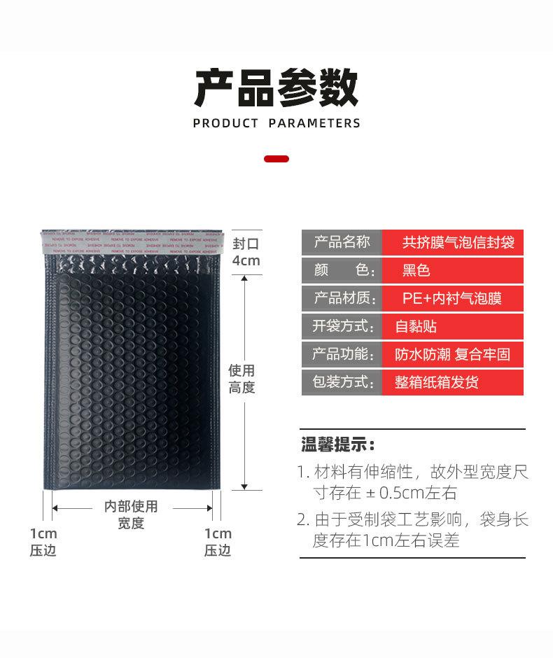 Bolsa de Burbujas Negra Express Película Coextruida Sobre de Burbujas Autoadhesivo Embalaje Logístico Transfronterizo Bolsa de Espuma de Color Bolsa de Embalaje Express