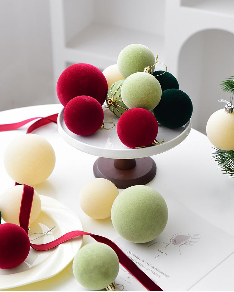 8cm wine red flocking ball/100g, 8cm dark green flocking ball/100g, 8cm light green flocking ball/100g, 8cm be...