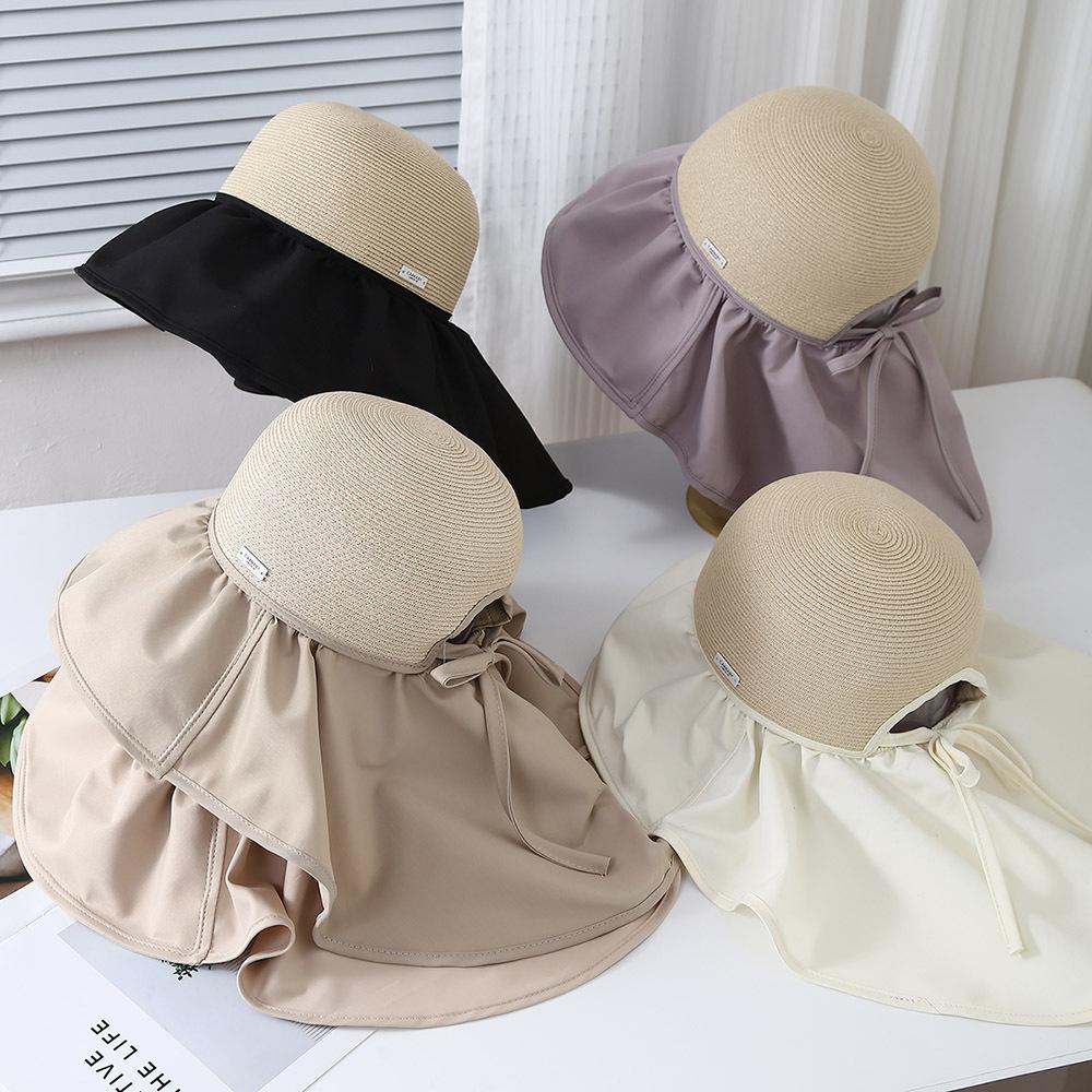 Verano Nuevo Sombrero de Pescador Protección Solar para Mujer Cubierta Facial Exterior Viaje Sombrero de Sol Versátil Hace que la Cara se Vea Más Pequeña Sombrero Parasol Empalmado