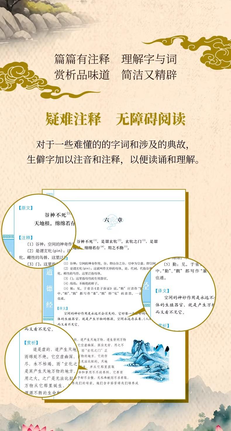 Tao Te Ching Original Auténtico Serie Cien Clásicos de Guoxue Anotación+Traducción+Apreciación Iluminación Guoxue Escuela Primaria y Secundaria