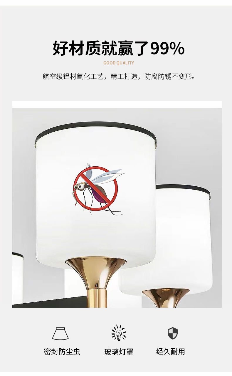 Candelabro de Sala de Estar Antimosquitos Lámparas Nuevo Nórdico Moderno Simple Atmosférico Nuevo Estilo Chino Hogar Dormitorio Comedor Lámpara Principal