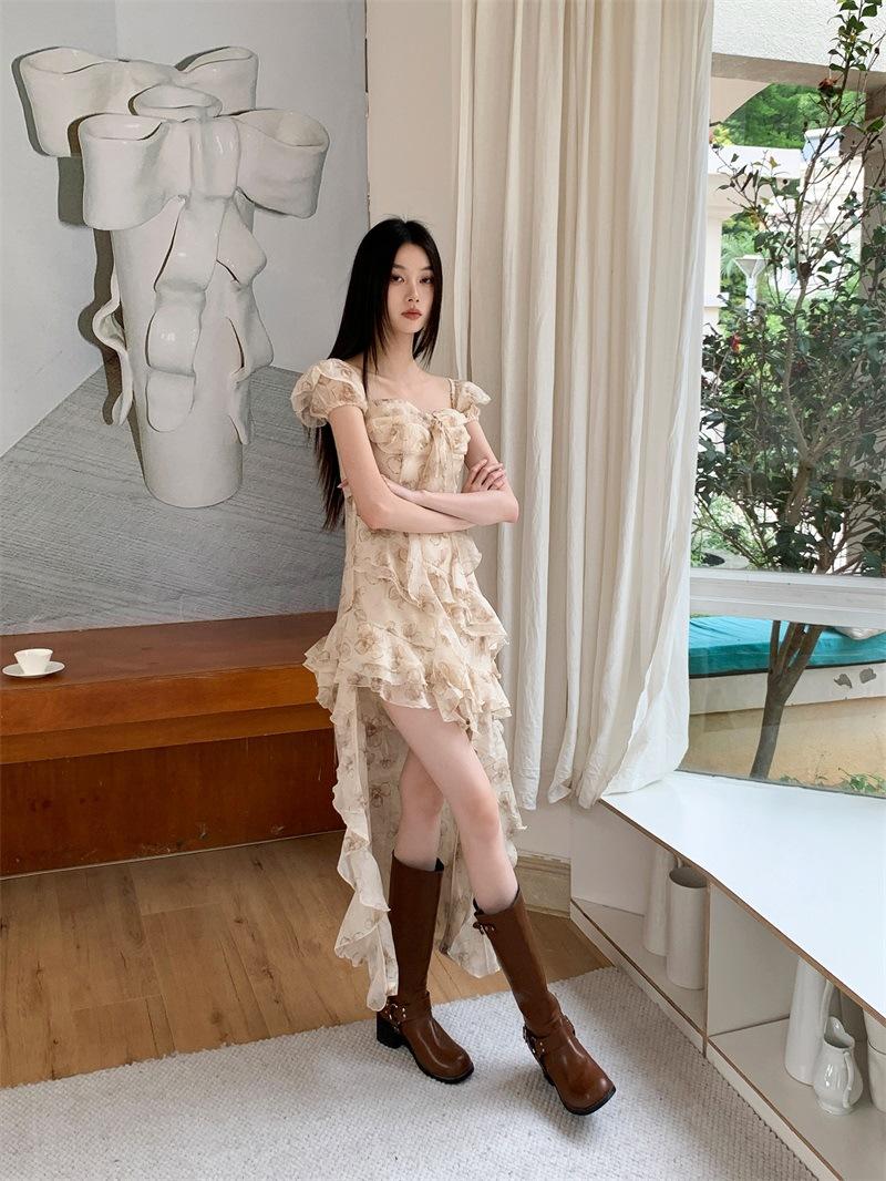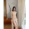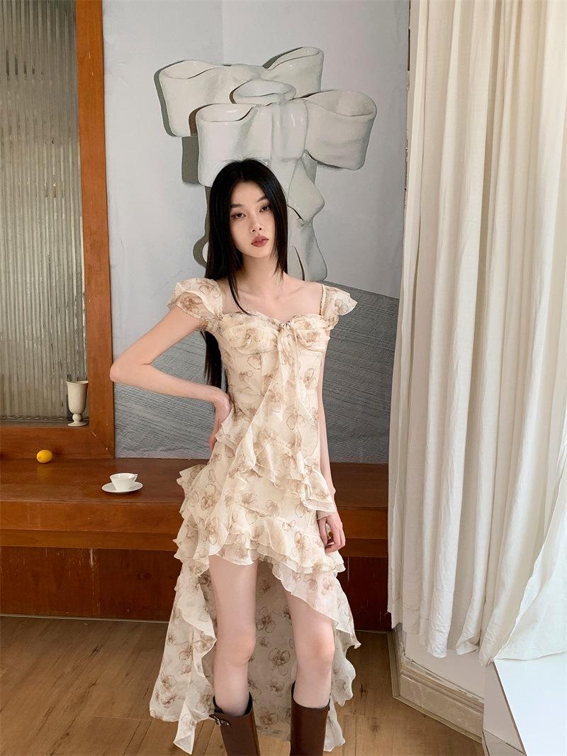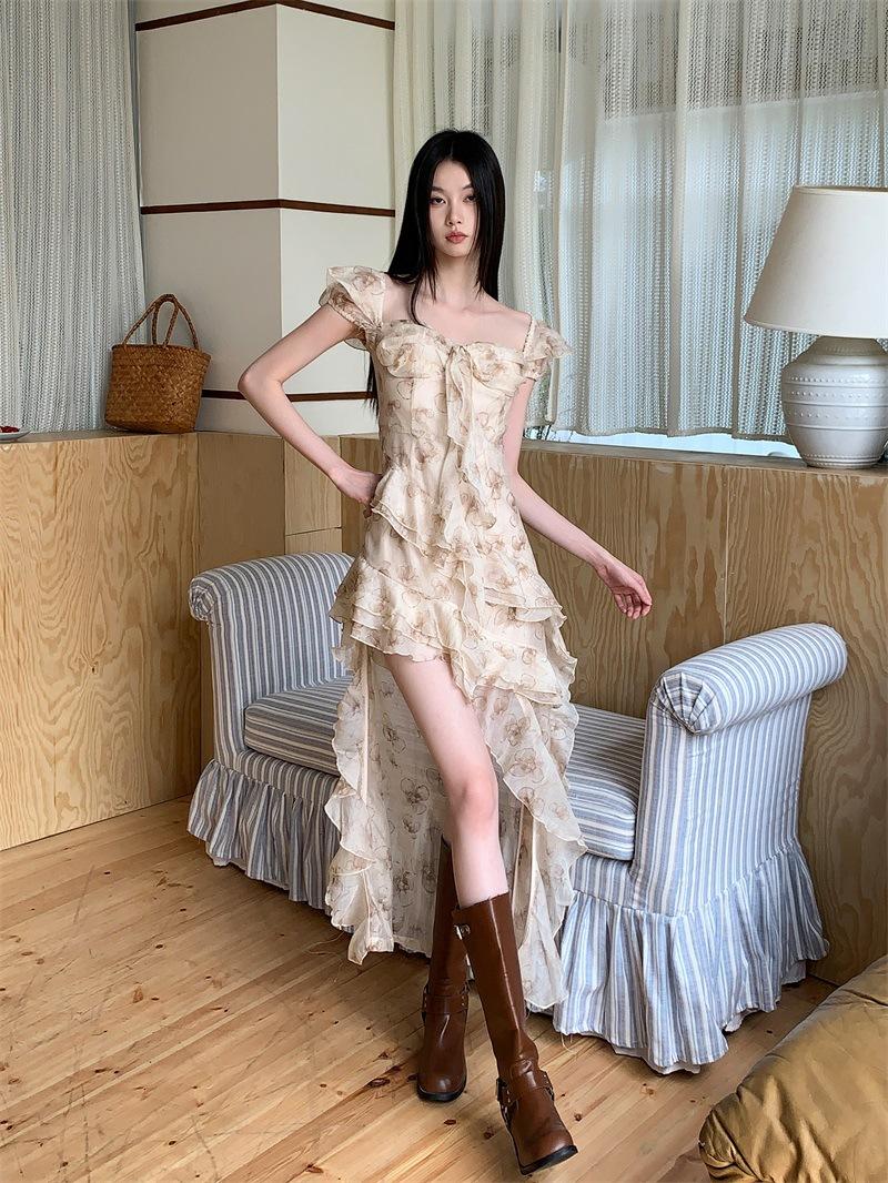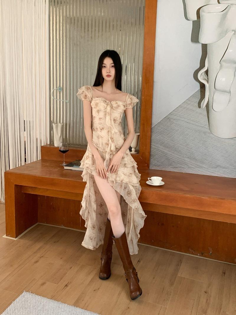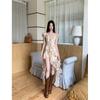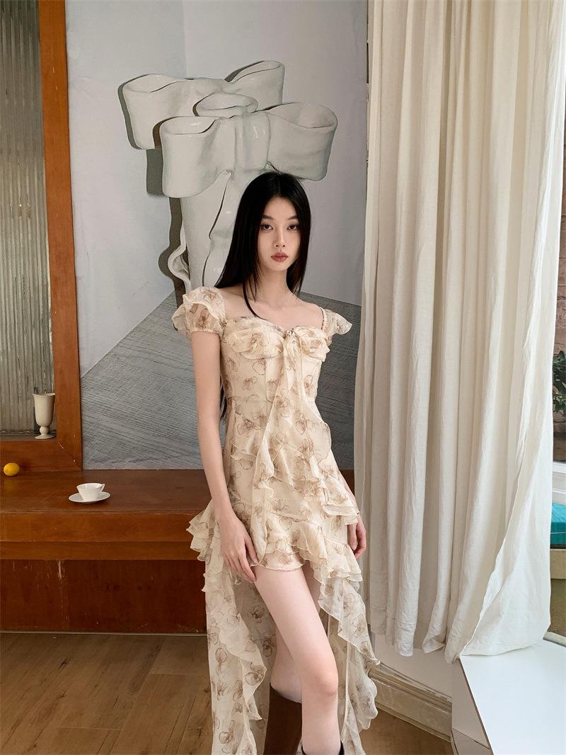 Foto Real de Vestido Slip Largo con Cola de Diseño Floral en Stock