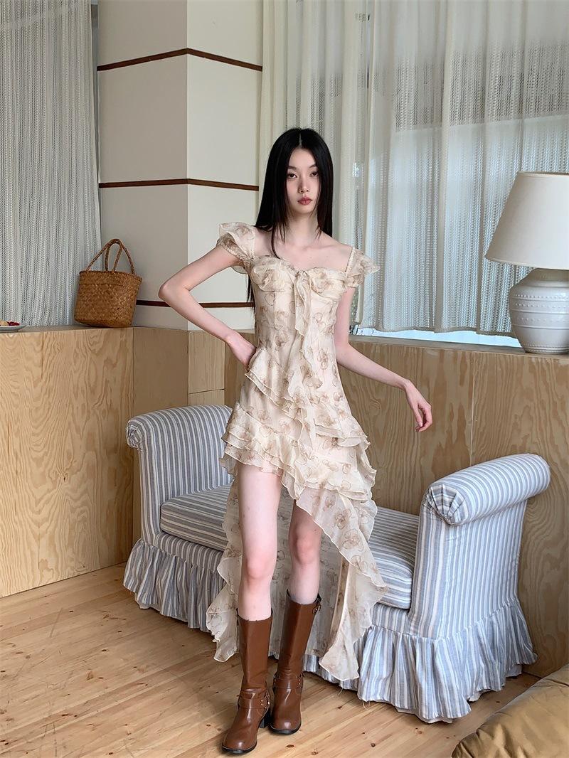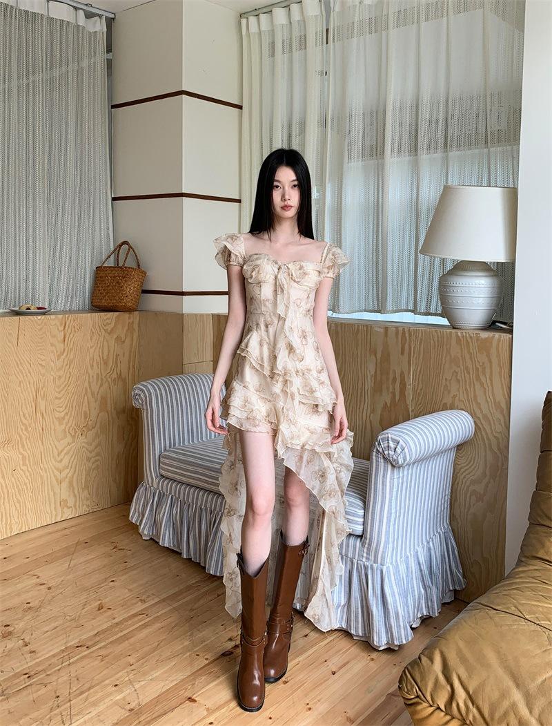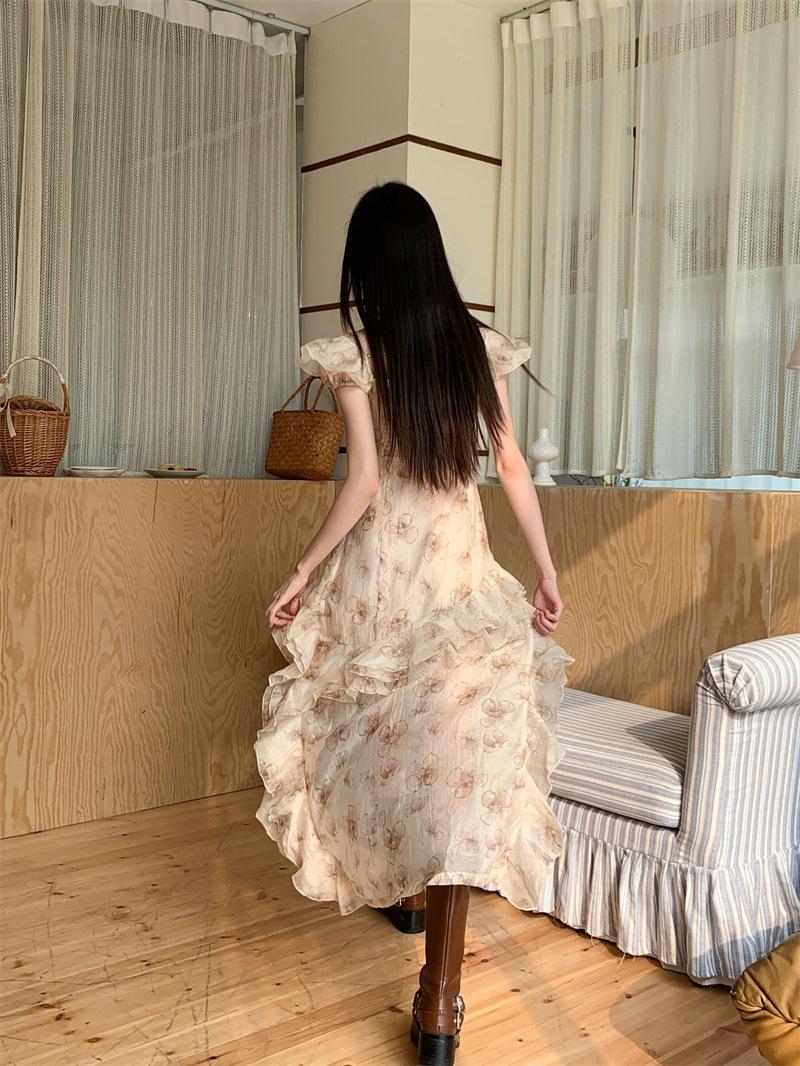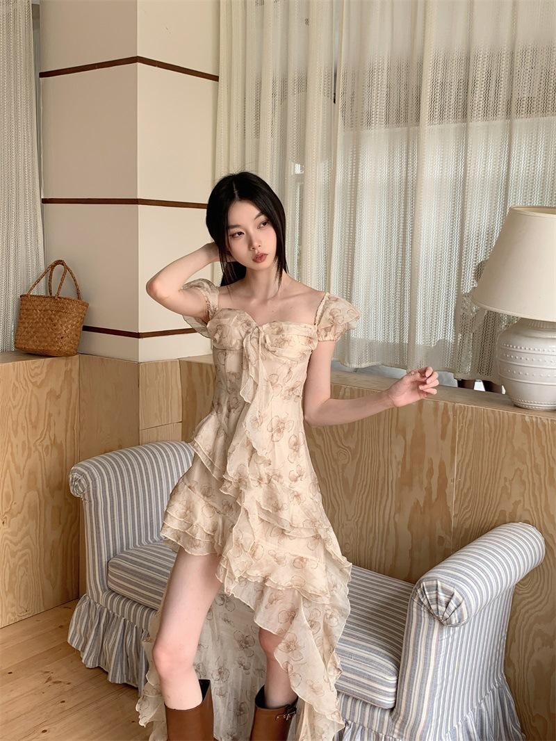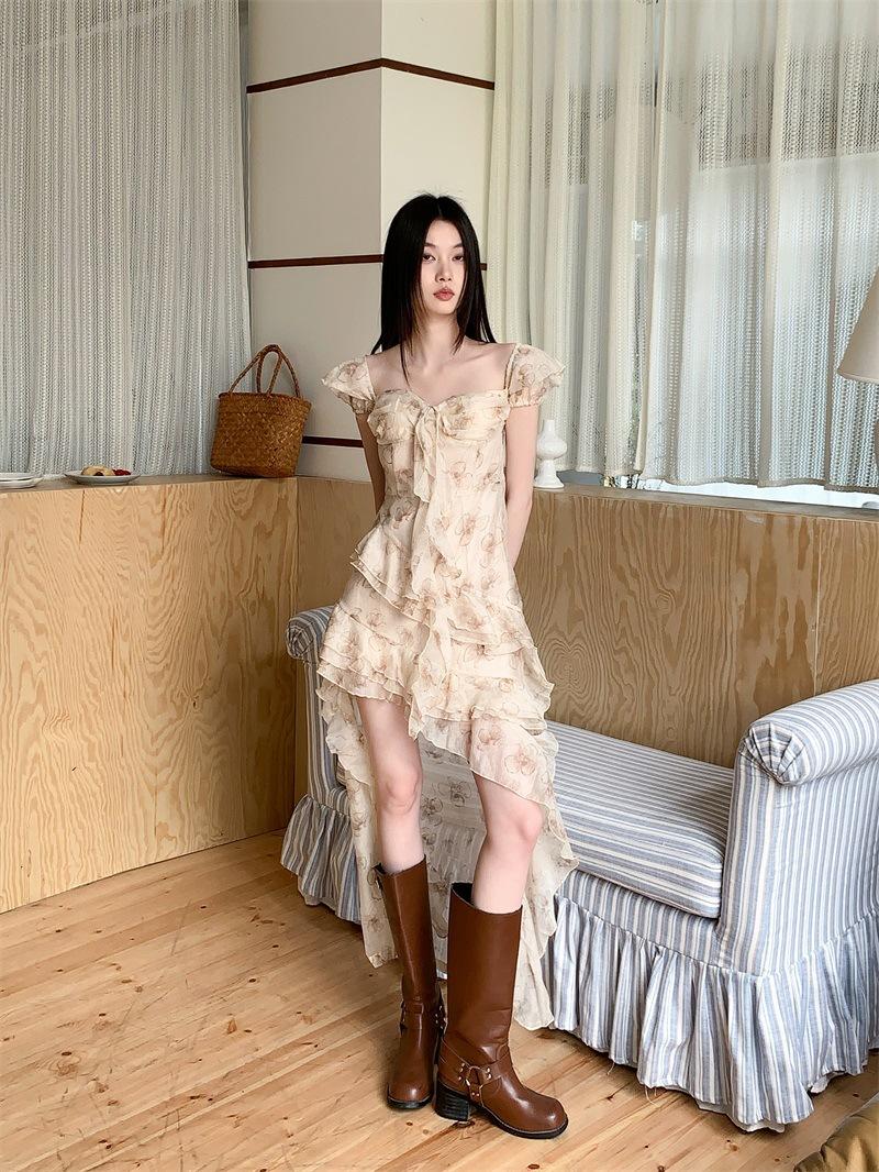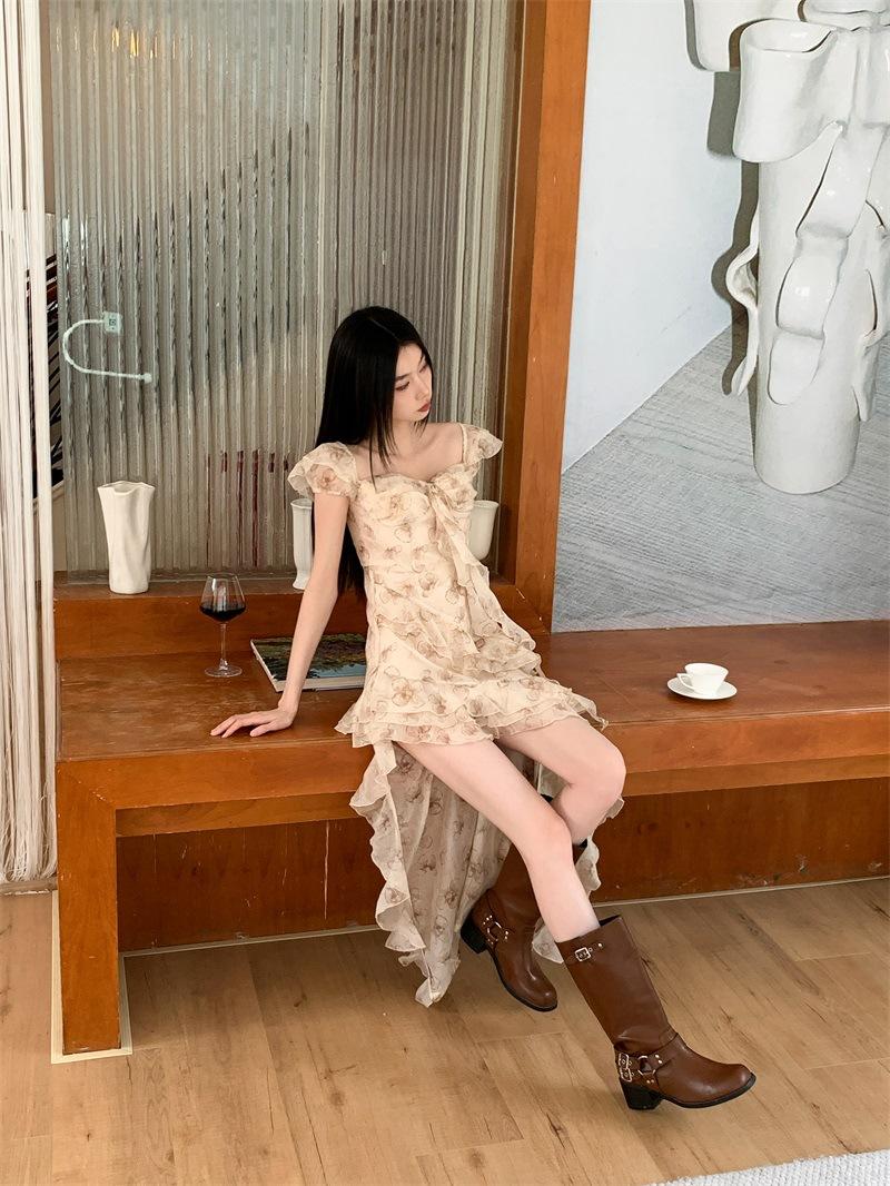 Foto Real de Vestido Slip Largo con Cola de Diseño Floral en Stock