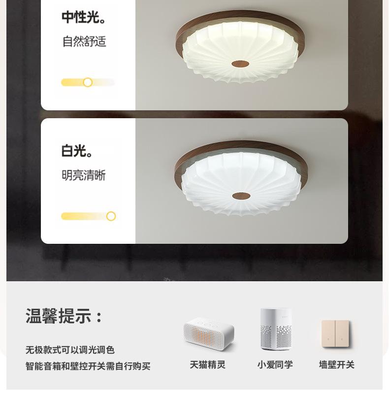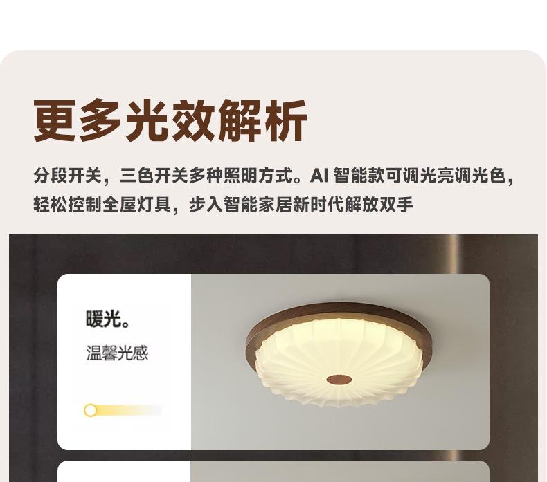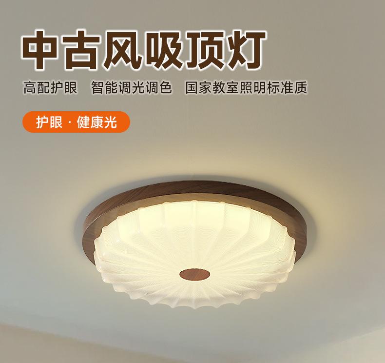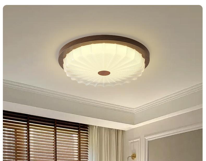 Luz de Techo para Dormitorio Estilo Chino Madera de Nogal LED Protección para los Ojos Luz Redonda Estilo Wabi-Sabi Luz para Habitación Estudio Luz para Dormitorio Principal