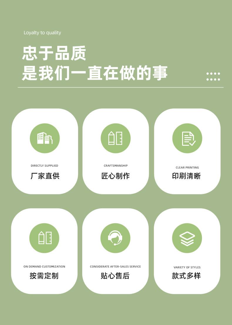 Wenzhou Junli Packaging Co., Ltd. se especializa en la producción de diversas etiquetas autoadhesivas, bolsas de lona y bolsas no tejidas. Nuestra empresa se adhiere a la política empresarial de buscar la verdad, ser pragmáticos, rigurosos y dedicados, y cuenta con un estricto sistema de garantía de calidad. En el nuevo siglo, seguiremos los principios de innovación, progreso, rigor y pragmatismo, y el espíritu emprendedor de esforzarnos por la excelente calidad y la perfección, para crear productos excelentes y servicios excelentes, y dar alas al despegue de su empresa. Elaboramos meticulosamente cada producto, garantizamos una calidad excelente y mantenemos una alta eficiencia. Wenzhou Junli Packaging Co., Ltd. integra una actitud profesional, espíritu profesional, prácticas profesionales y excelente reputación en los detalles del servicio, de modo que tanto la apariencia como la esencia de los productos y servicios superen la perfección. La reputación, la calidad y el servicio riguroso siempre han sido nuestra búsqueda. Siempre nos hemos adherido al principio de buscar la supervivencia a través de la calidad y ganar el futuro a través de la integridad en la producción y operación. ¡Esperamos su visita a la fábrica y su consulta!