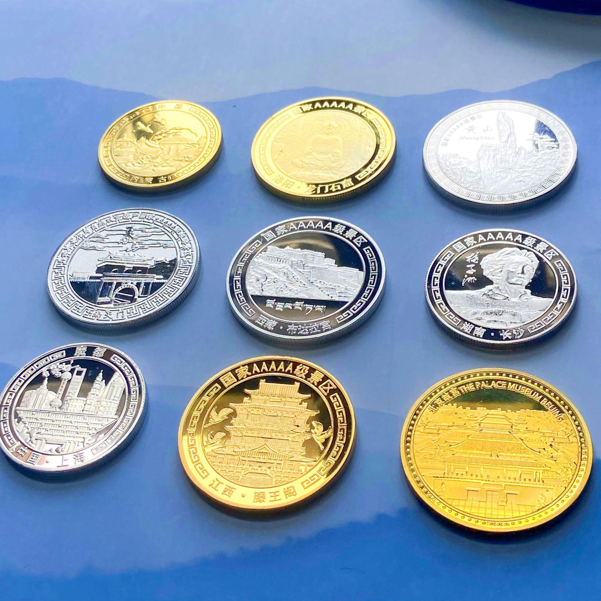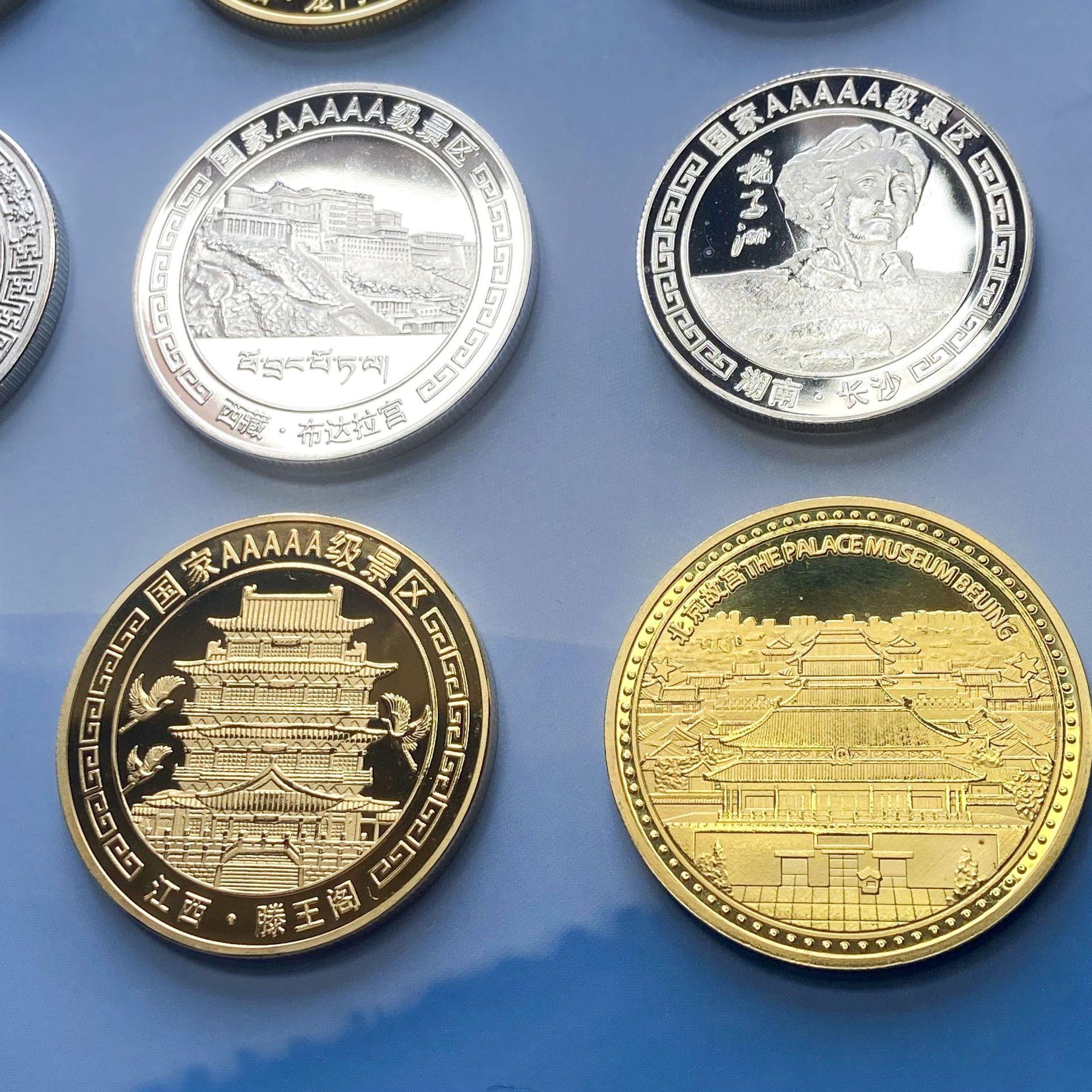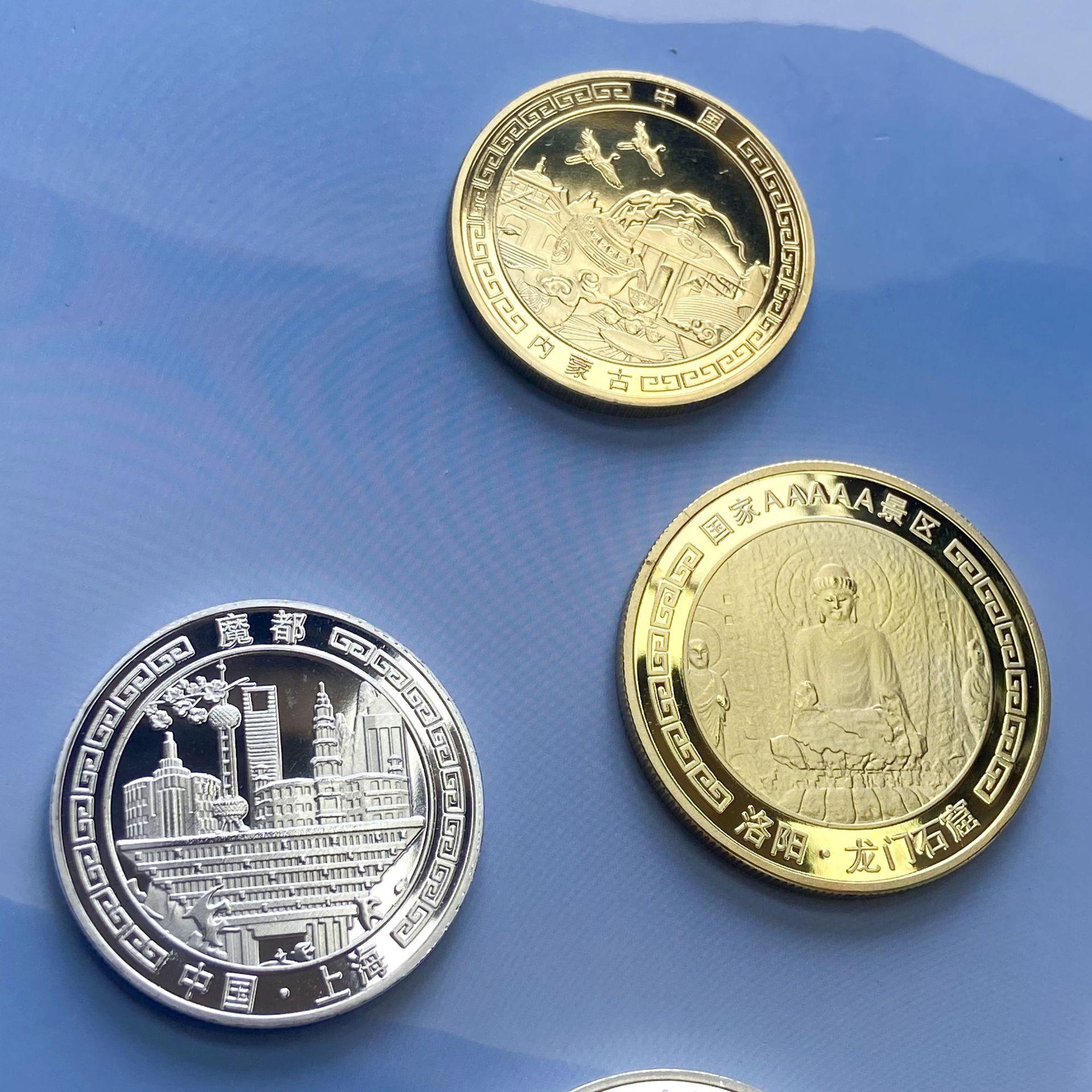 Monedas Conmemorativas de Metal Personalizadas Impresión Escénica de la Ciudad Medallas Conmemorativas de Aniversario Monedas de Aleación Chapadas en Plata y Oro