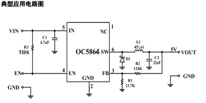 OC5864 adopta el modo de operación PWM de modo de corriente, el lazo es fácil de estabilizar y proporciona una respuesta transitoria rápida.