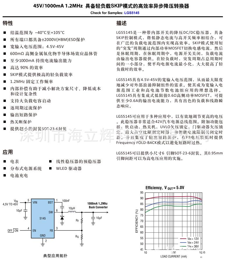 Alcanza una corriente de salida máxima de 0.6 A dentro de un amplio rango de potencia de entrada de 5.5-60 V, y tiene excelente voltaje de línea y
