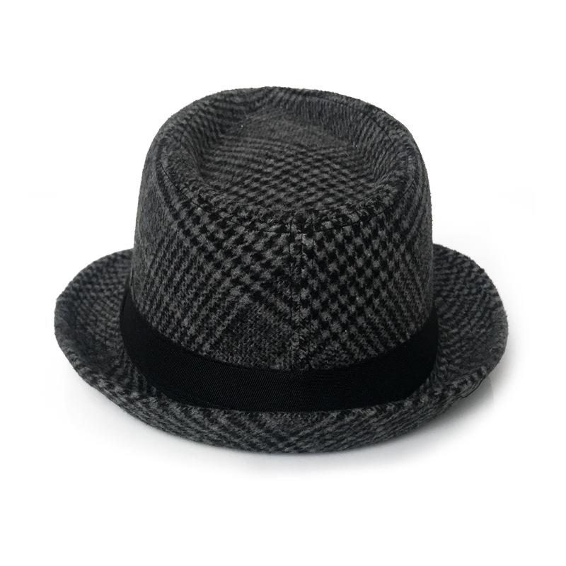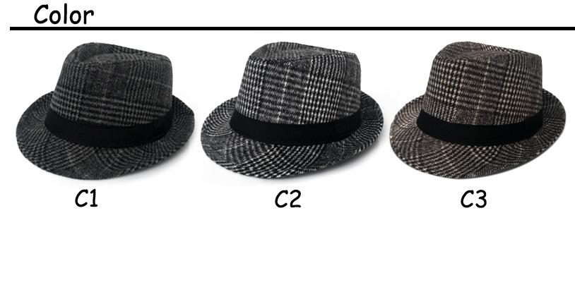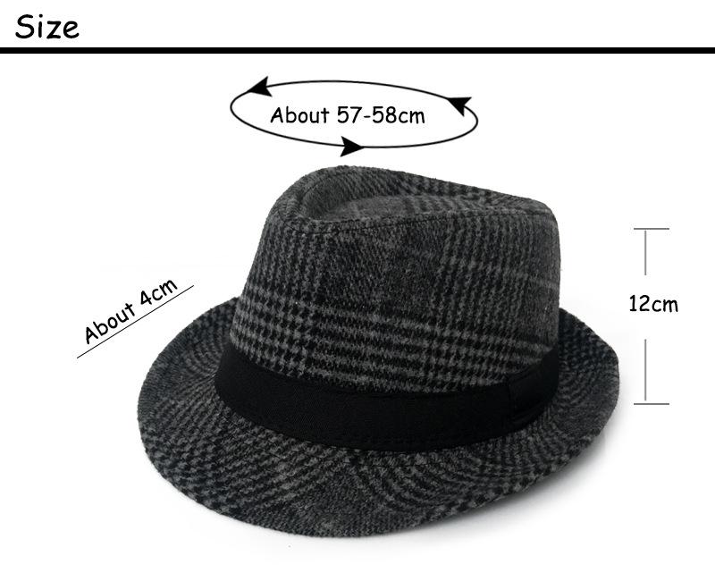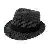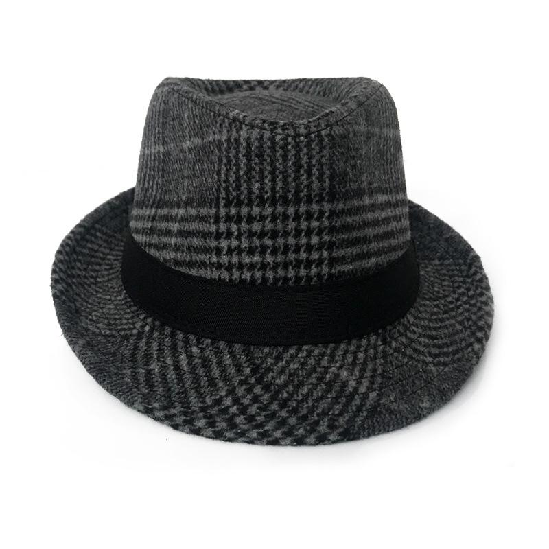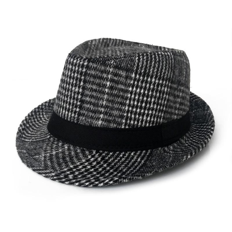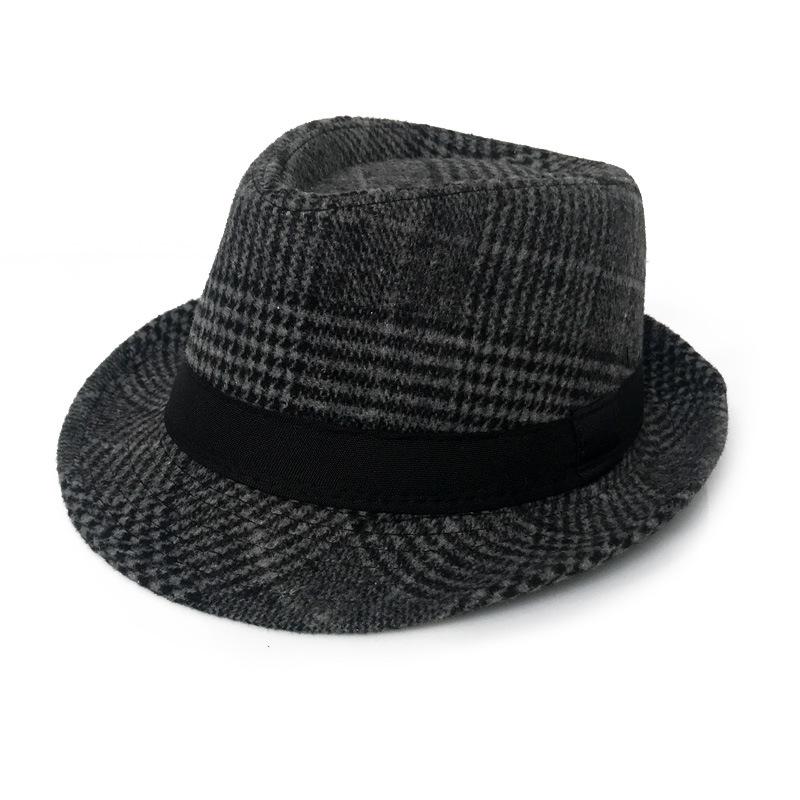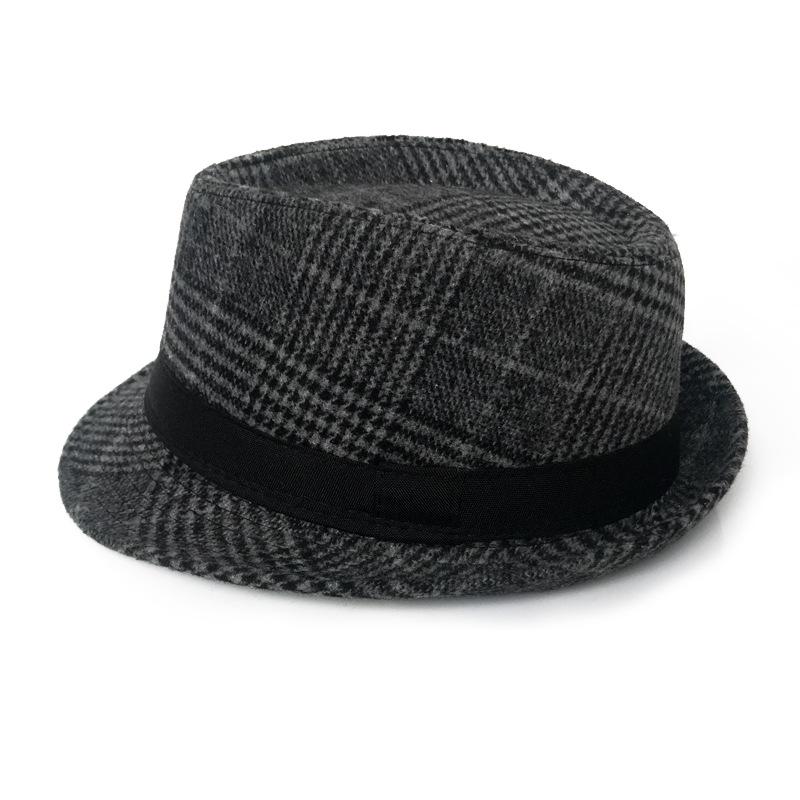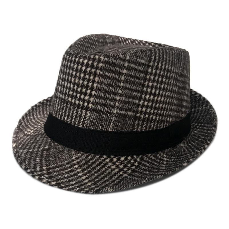 Sombrero Fedora de Ala Pequeña para Hombre de Otoño e Invierno, Sombrero de Jazz de Lana a Cuadros, Sombrero de Caballero de Fieltro de Lana Británica Vintage