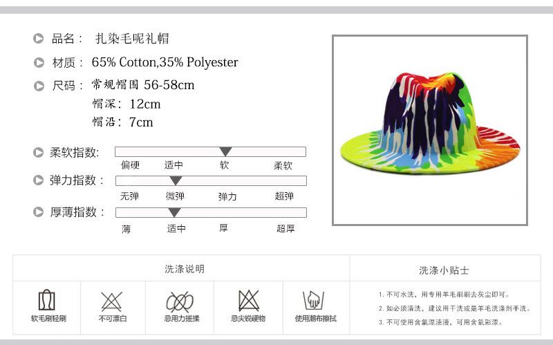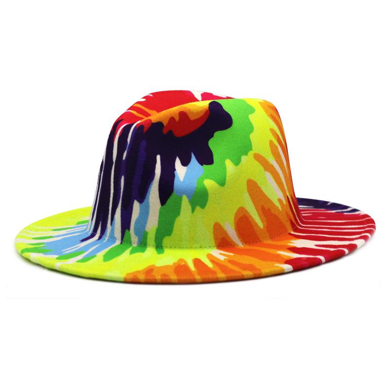 Sombrero fedora de tweed de color primavera y otoño sombrero de jazz de color brillante sombrero de fieltro europeo y americano para hombres y mujeres sombrero fedora de lana sintética tie-dye