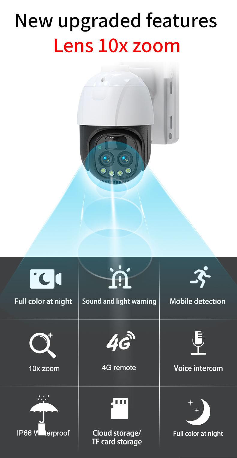 Cámara de Vigilancia Solar Exterior Personalizada 4G Móvil Remota Zoom 10x HD Impermeable Visión Nocturna a Color Completo