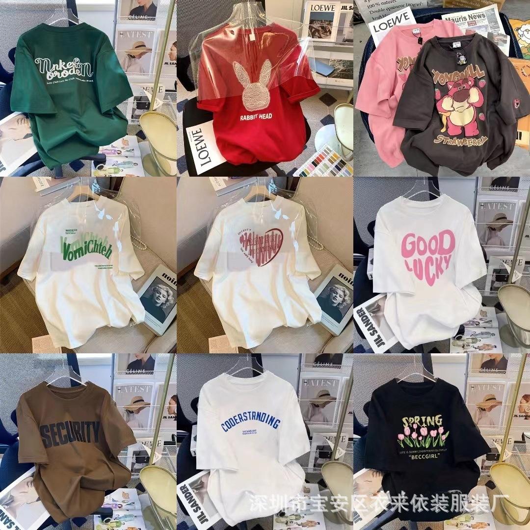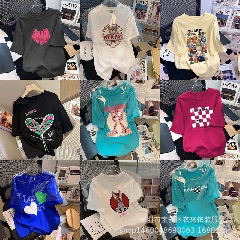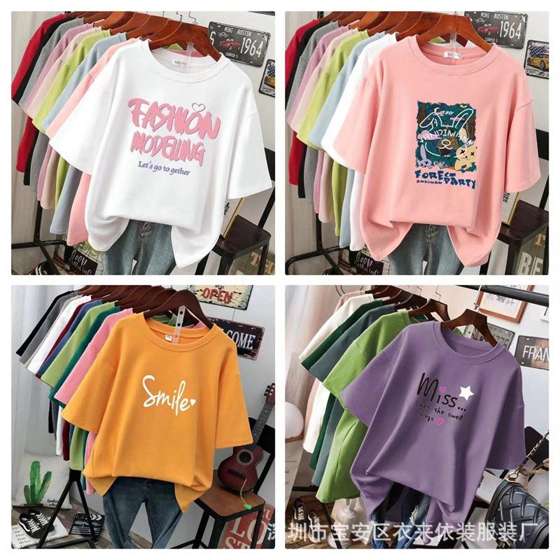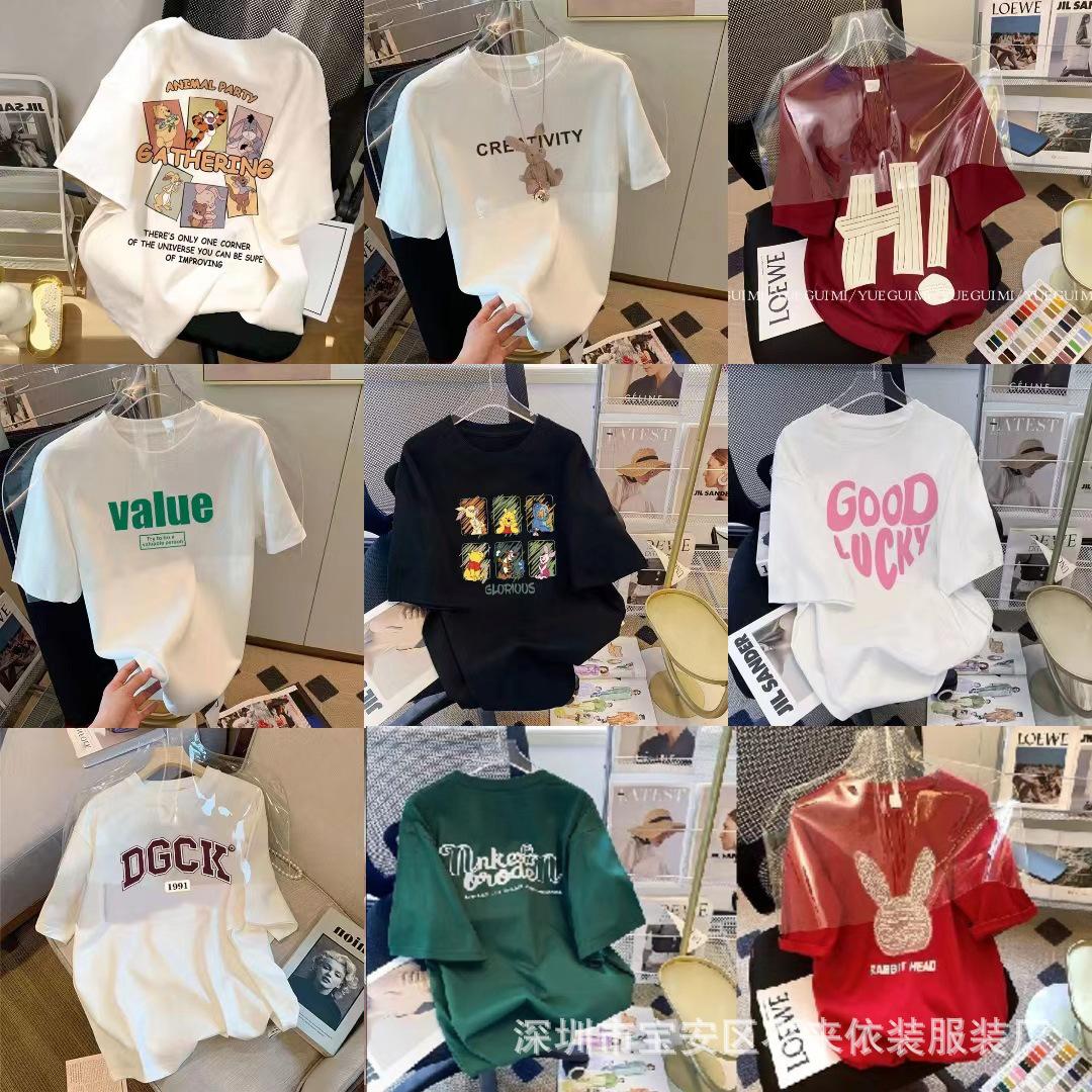 Puesto Callejero de 2 Yuan Ropa para Mujer Camiseta al por Mayor para Mujer Verano 9.9 Envío Gratis Una Pieza Envío Directo Camiseta de Manga Corta para Mujer