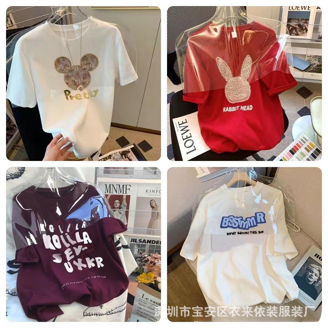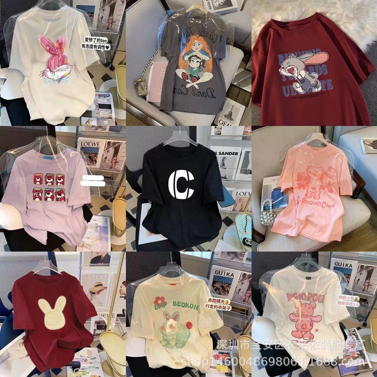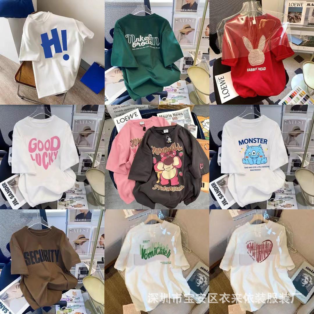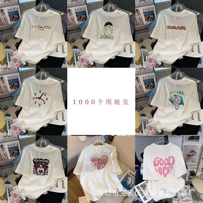 Puesto Callejero de 2 Yuan Ropa para Mujer Camiseta al por Mayor para Mujer Verano 9.9 Envío Gratis Una Pieza Envío Directo Camiseta de Manga Corta para Mujer