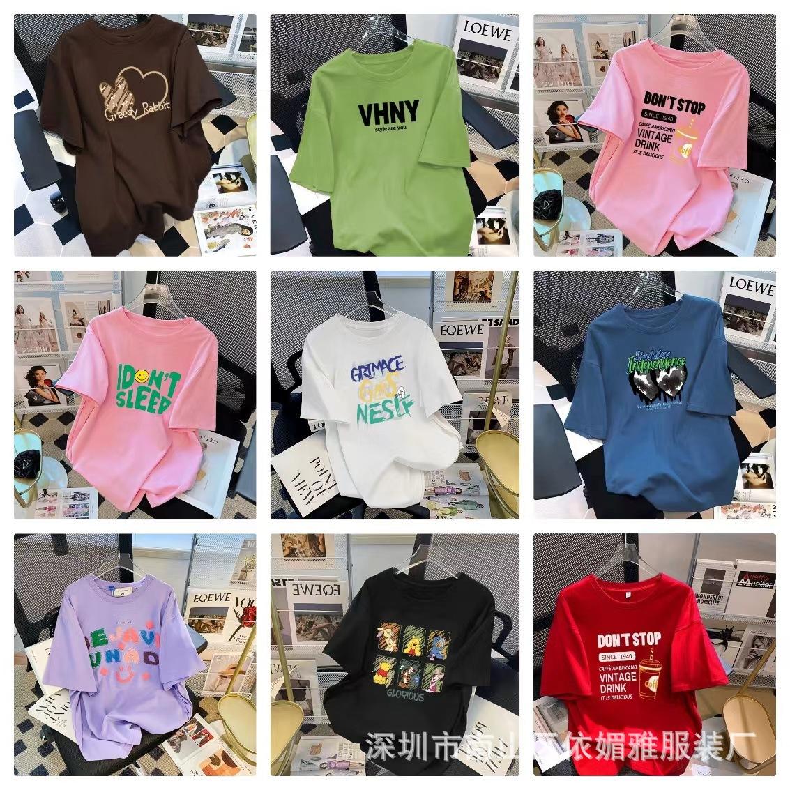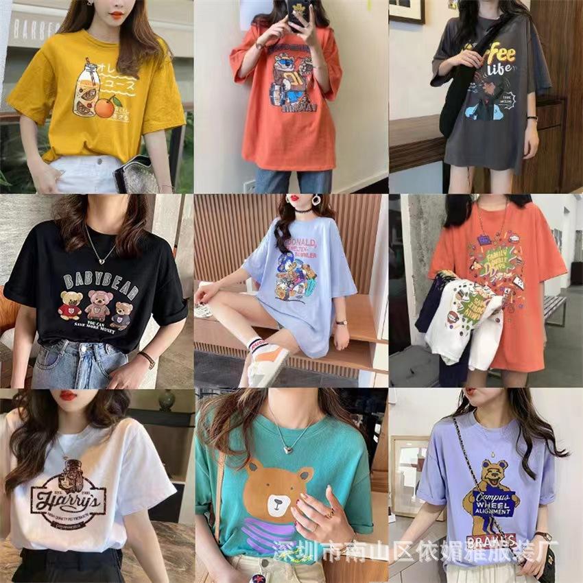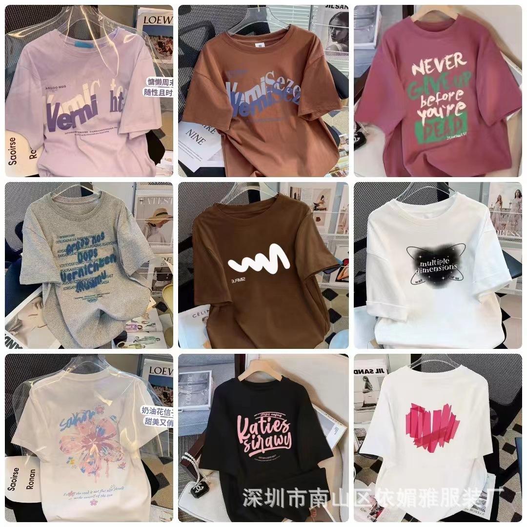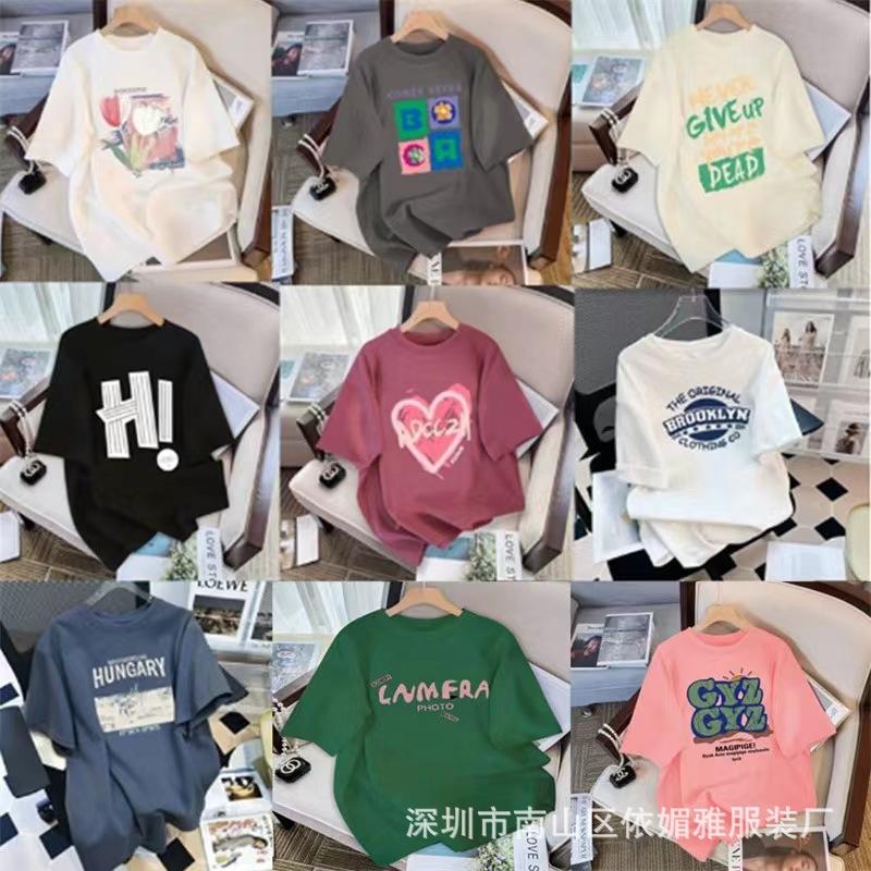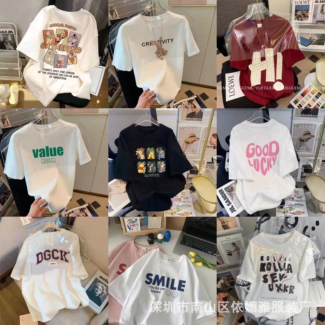 5 Yuan Puesto Callejero Suministro Ropa de Mujer al por Mayor Camiseta de Mujer Verano 9.9 Envío Gratis Una Pieza Envío Directo Nueva Camiseta de Manga Corta para Mujer