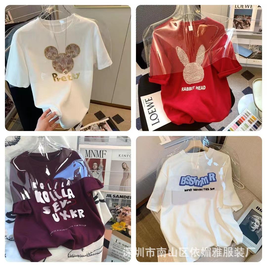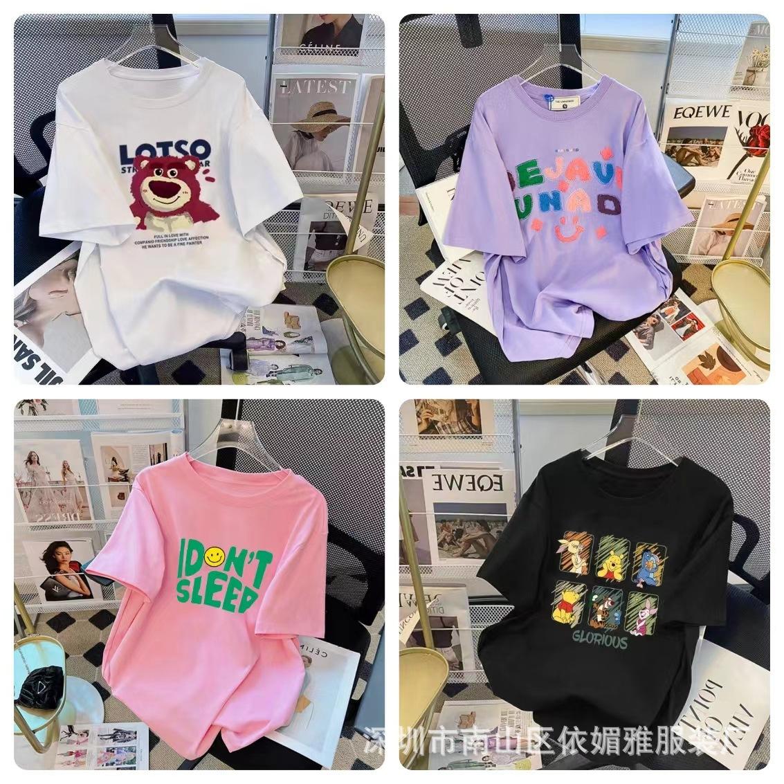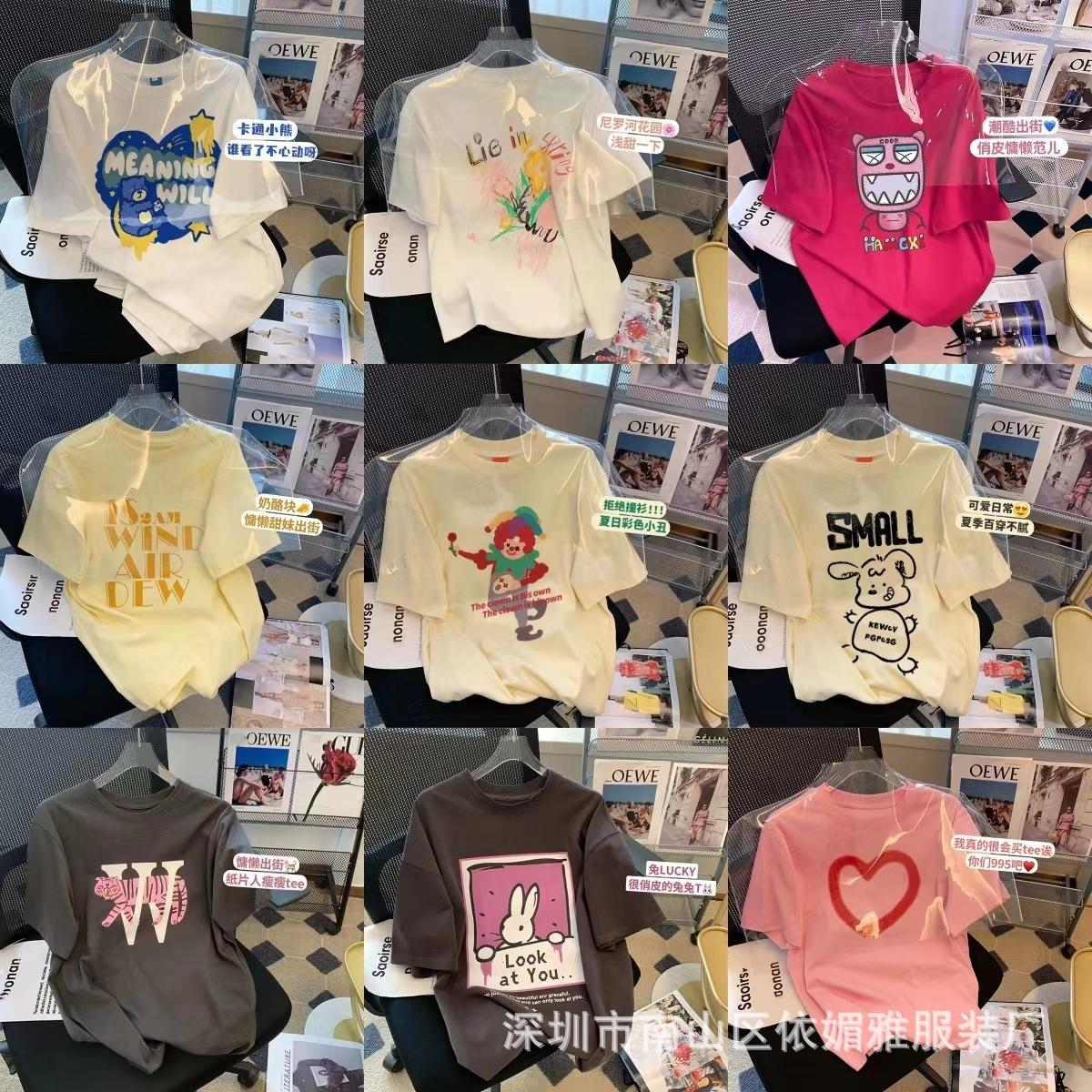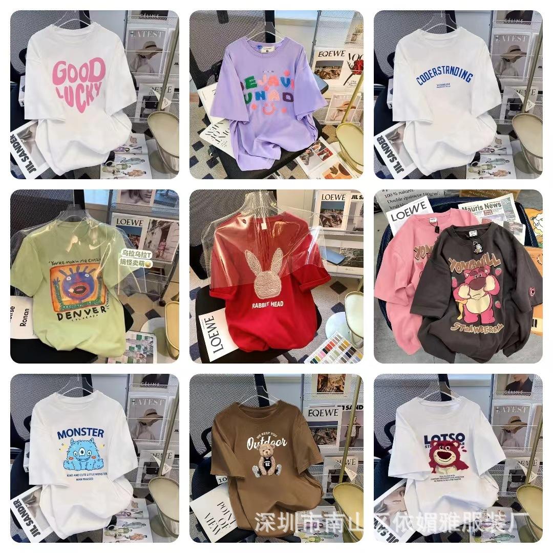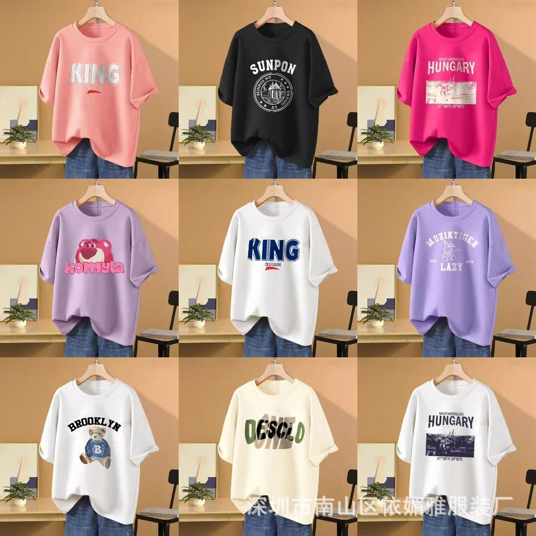 5 Yuan Puesto Callejero Suministro Ropa de Mujer al por Mayor Camiseta de Mujer Verano 9.9 Envío Gratis Una Pieza Envío Directo Nueva Camiseta de Manga Corta para Mujer