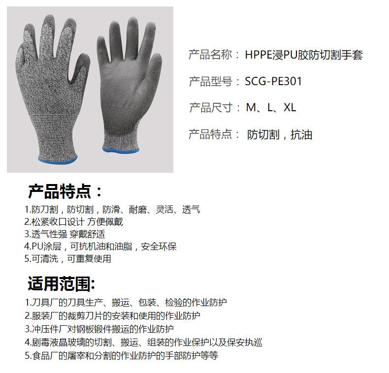 Guantes Anticorte Nivel 5 Sumergidos en PU Engrosado de HPPE Guantes Anticorte Guantes de Protección Laboral para Reparación Mecánica Ahora