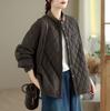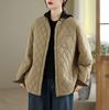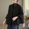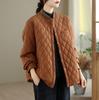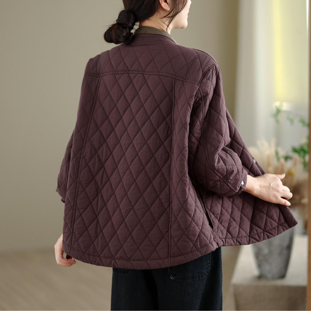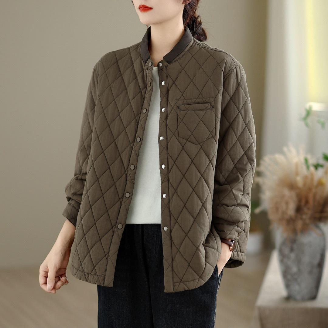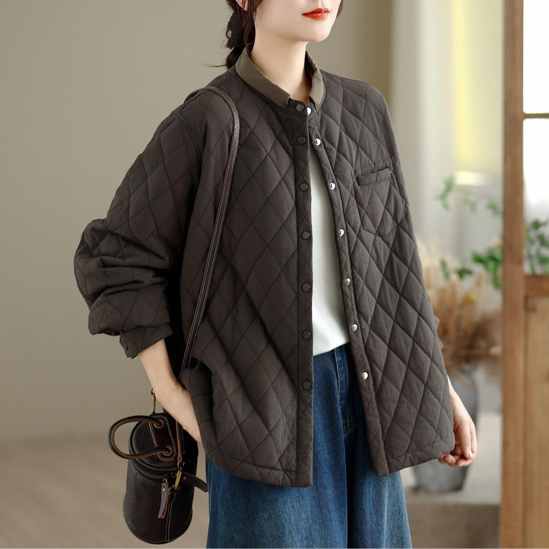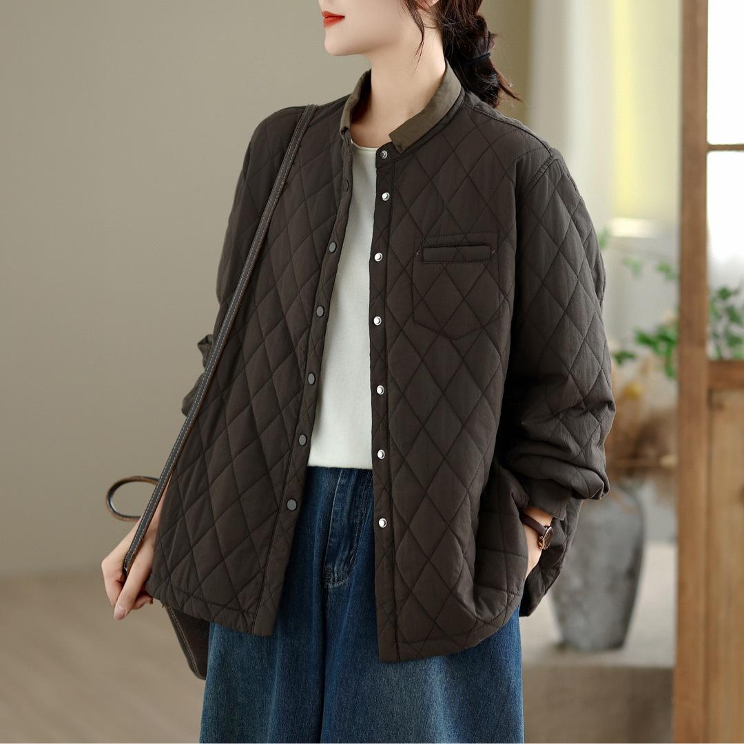 Chamarra Casual de Ropa de Trabajo Japonesa Abrigo Acolchado de Algodón para Mujer Otoño/Invierno Patrón Diamante Bloque de Color Cuello Alto Top de Moda