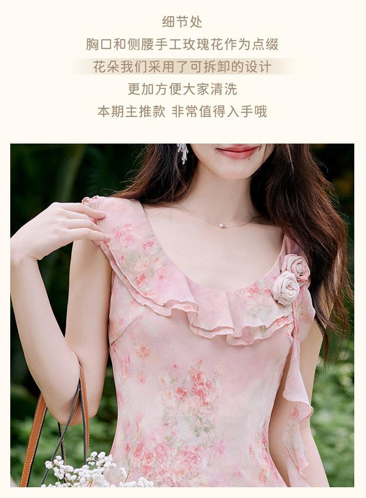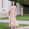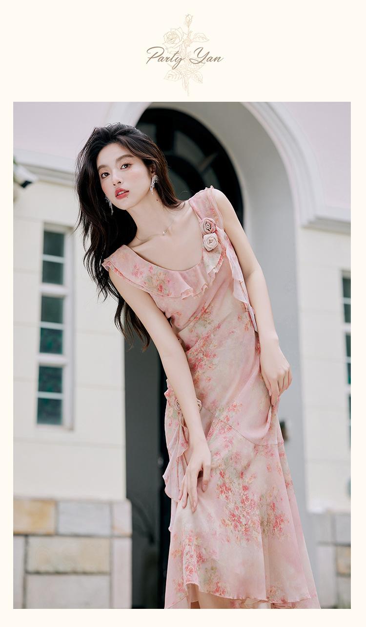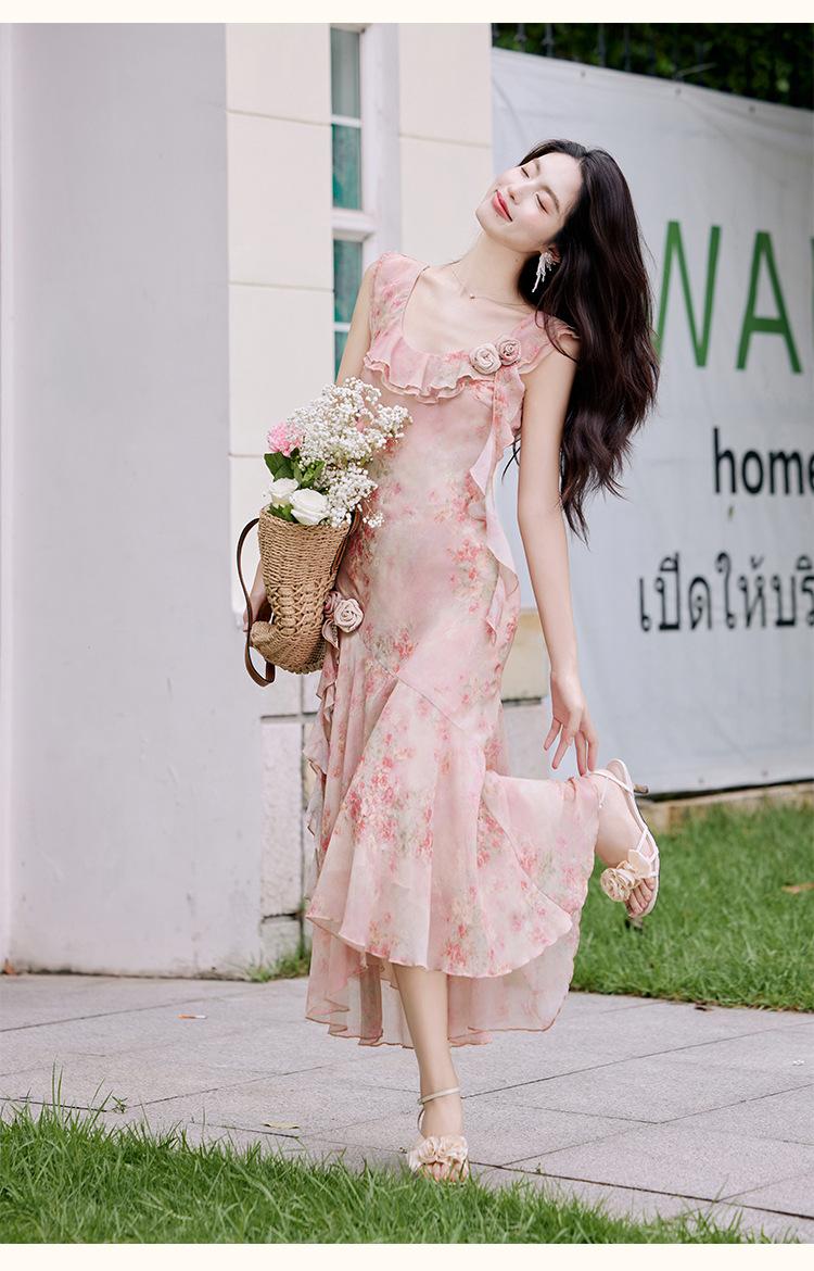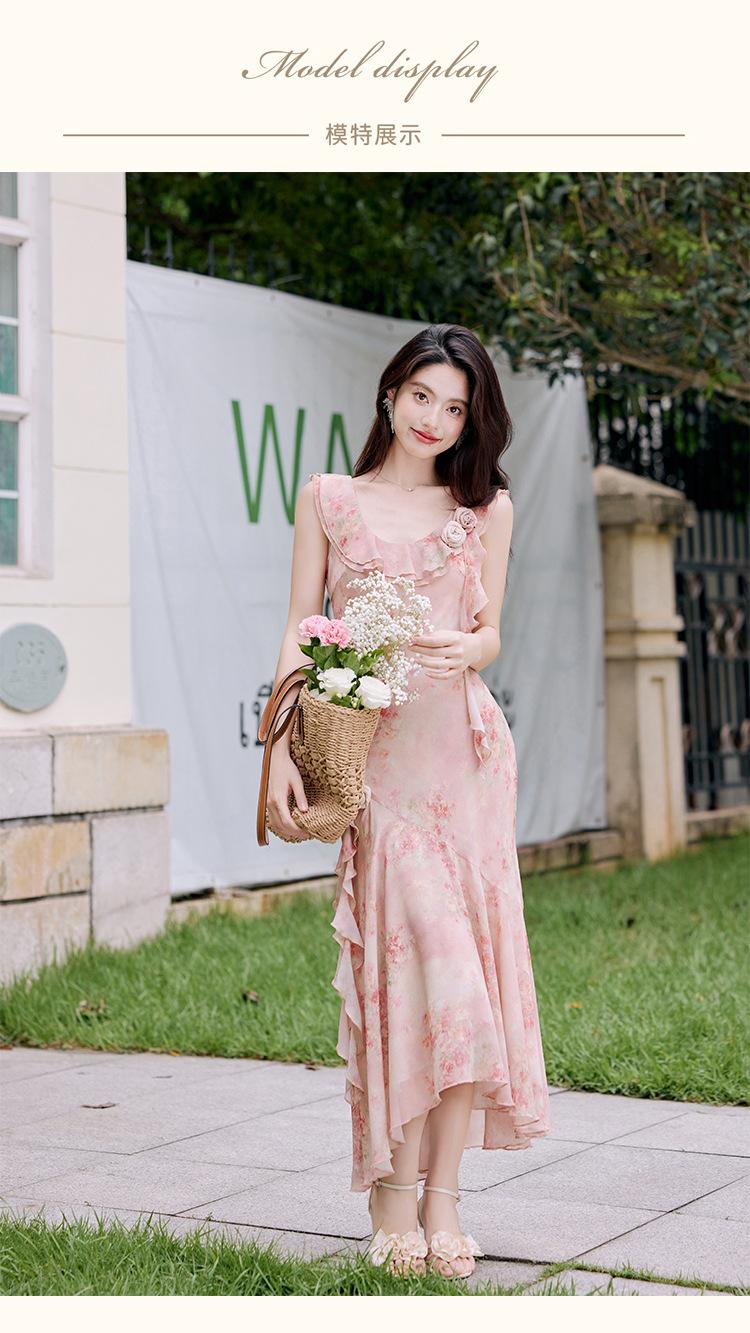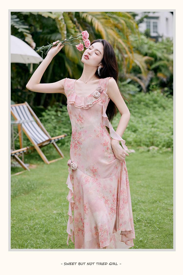 Nuevo Vestido Floral Retro Francés en Stock Foto Real Vacaciones en la Playa Vestido Largo de Playa Vestido Atmosférico
