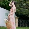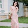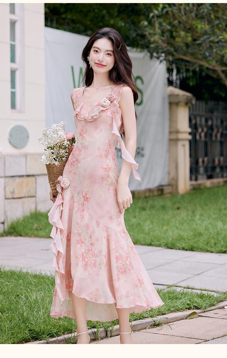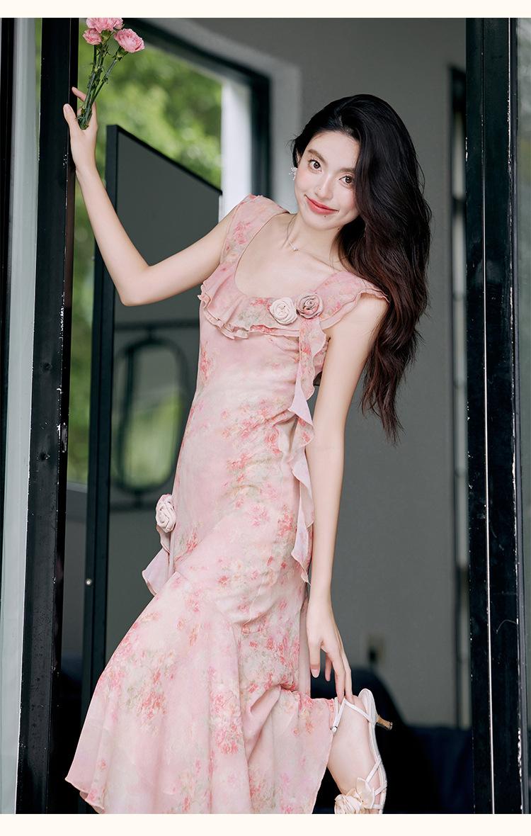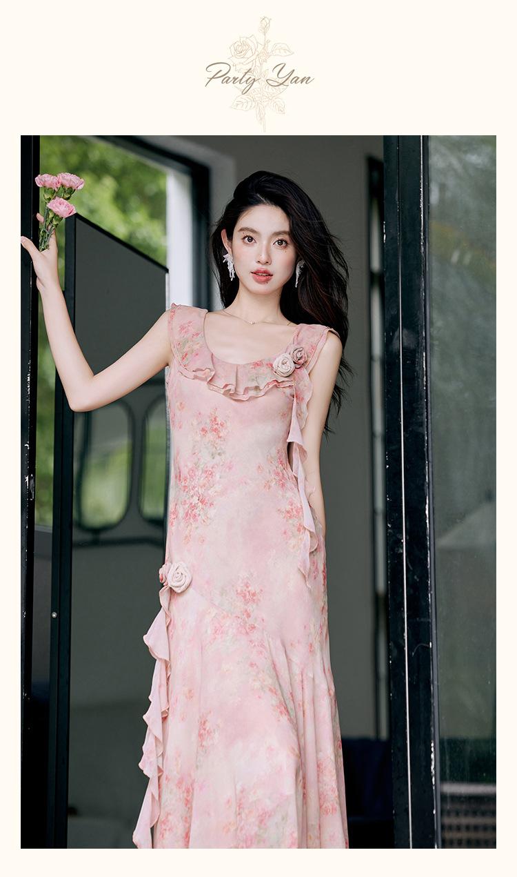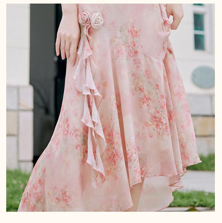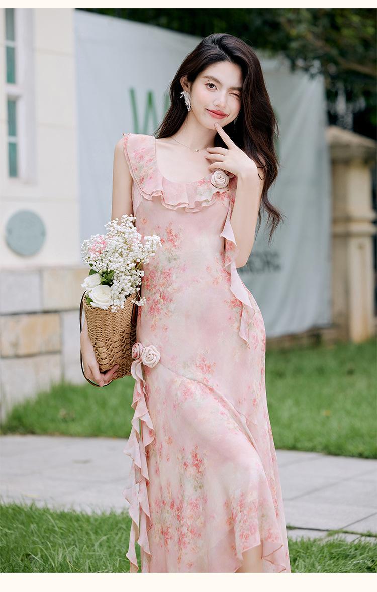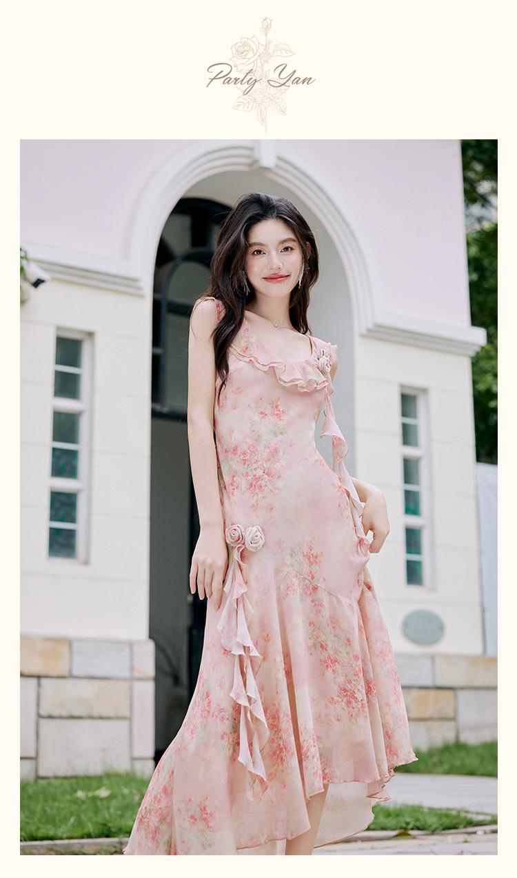 Nuevo Vestido Floral Retro Francés en Stock Foto Real Vacaciones en la Playa Vestido Largo de Playa Vestido Atmosférico