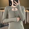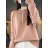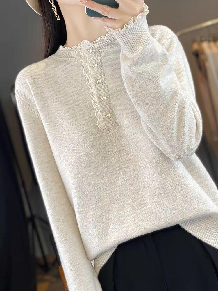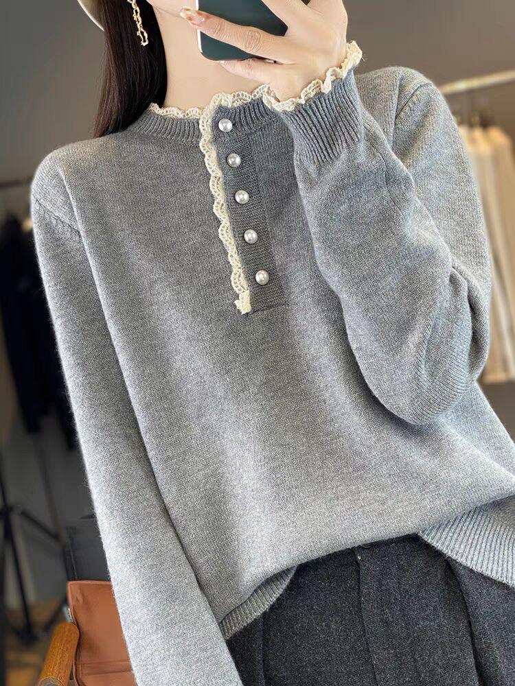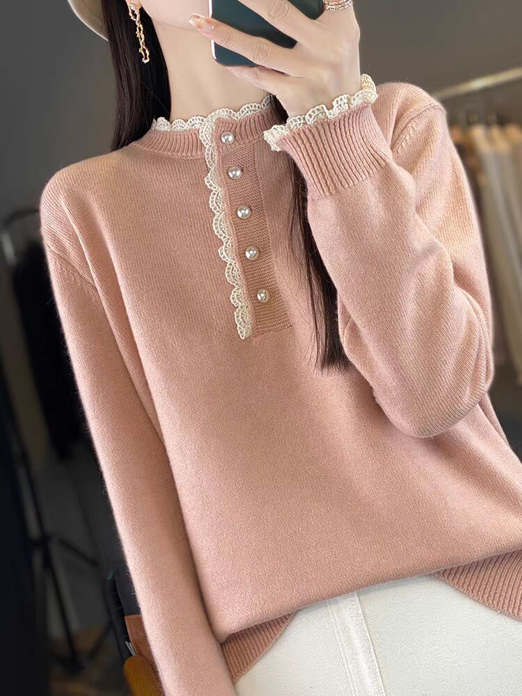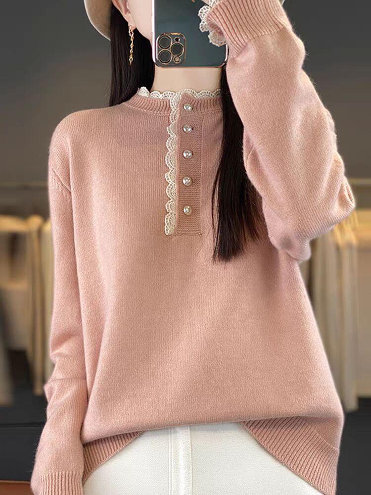 Top Básico de Punto con Cuello de Encaje Empalmado para Mujer 2025 Nuevo Estilo Ropa Interior de Moda Ropa de Mujer Suéter Otoño/Invierno