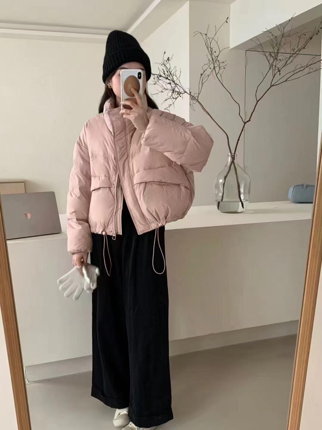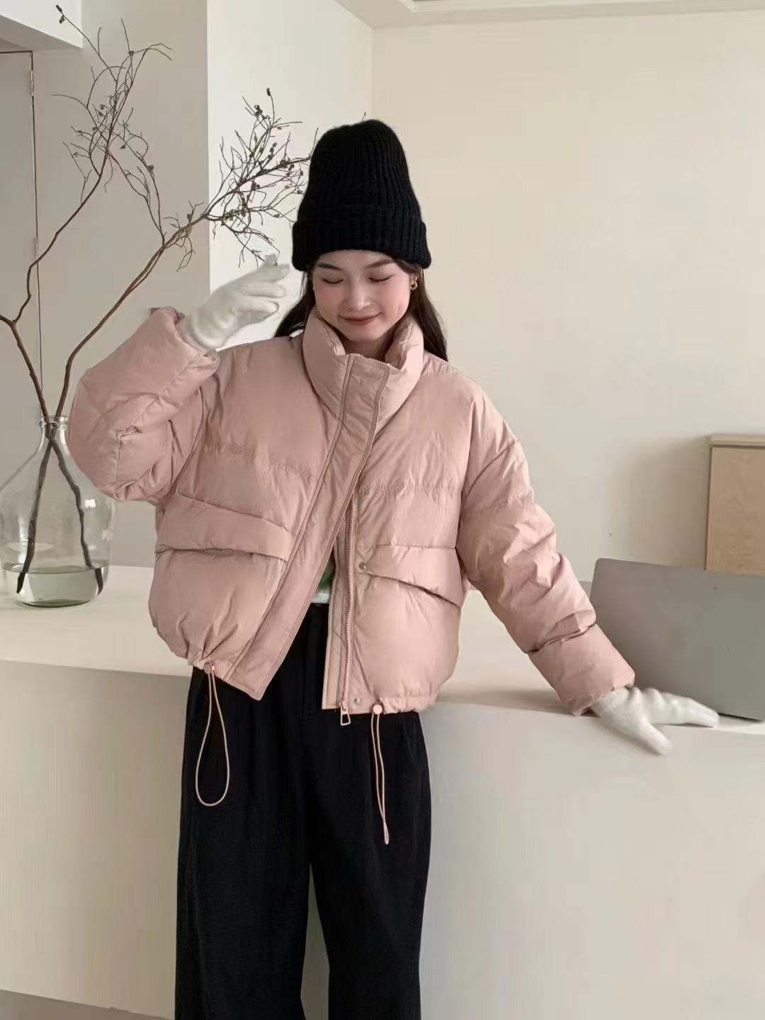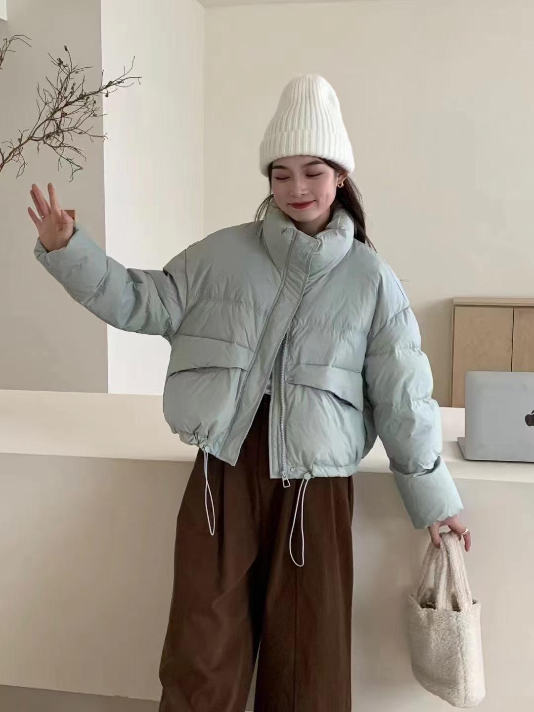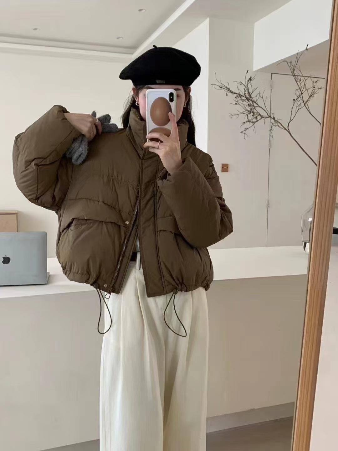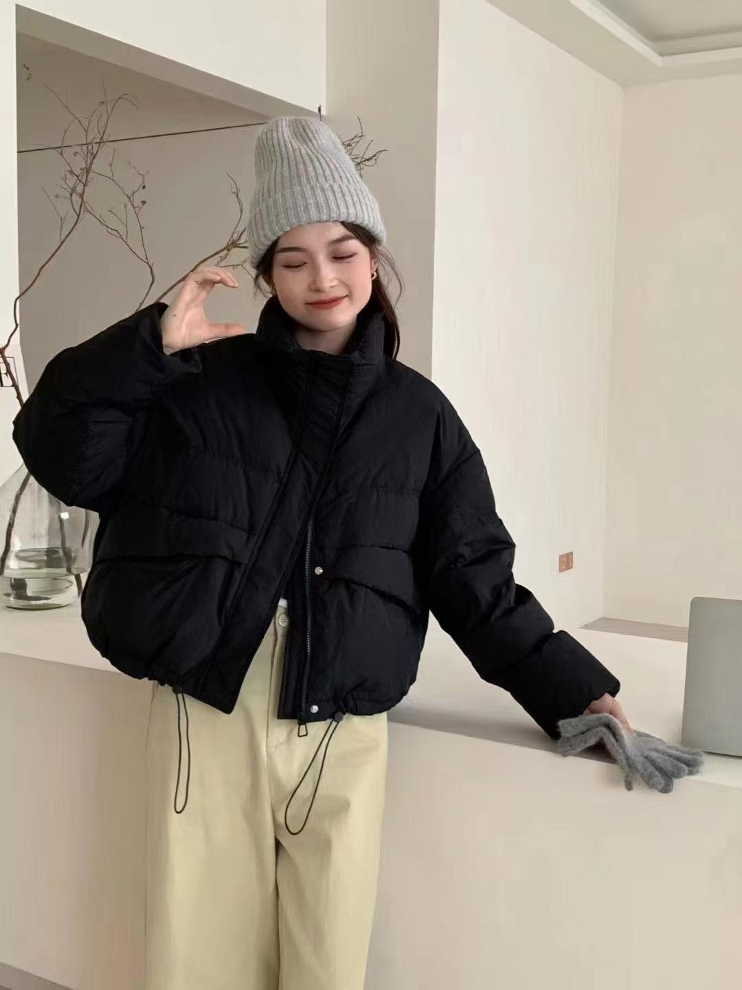 Estilo K de Cuello Alto Simple y Moderno Abrigo Corto Acolchado para Mujer Invierno 2025 Nuevo Diseño Nicho